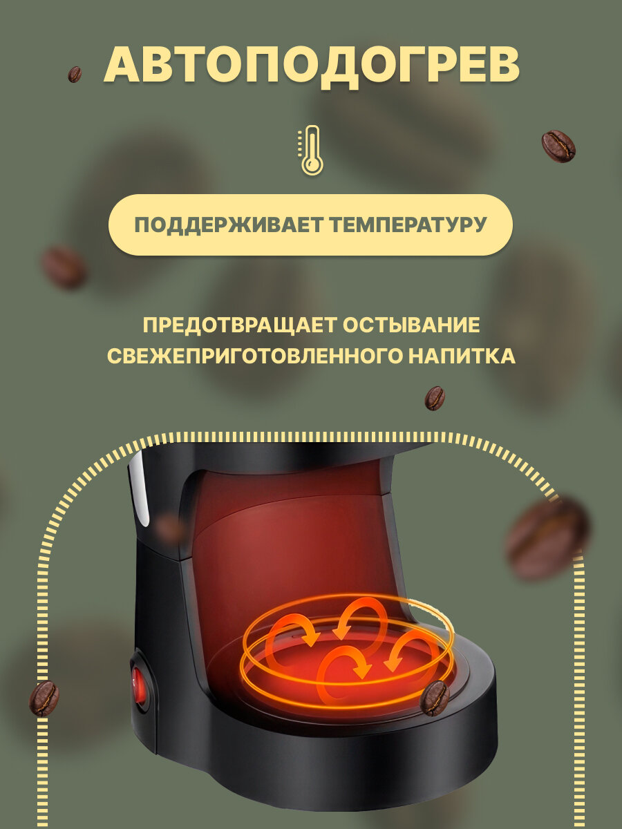 | Плюсы: | Тишина, быстрота, экономичность, подогрев кофе |