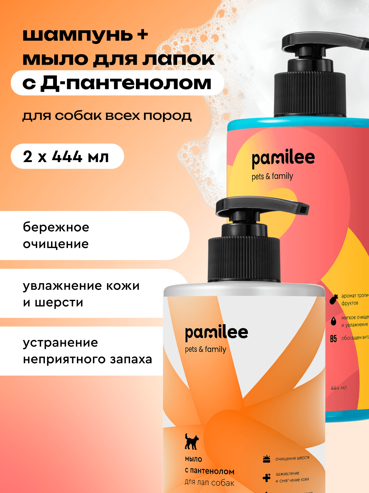 СохранитьШампунь + мыло с пантенолом для собак и кошек, гипоаллергенные, профессиональные, Pamilee интересное: