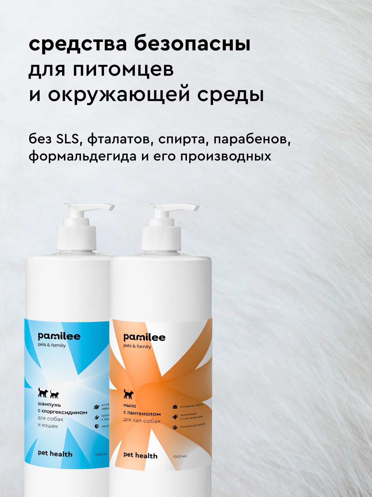Купить Шампунь + мыло для собак и кошек с хлоргексидином и пантенолом, 2л, гипоаллергенные, профессиональные, Pamilee