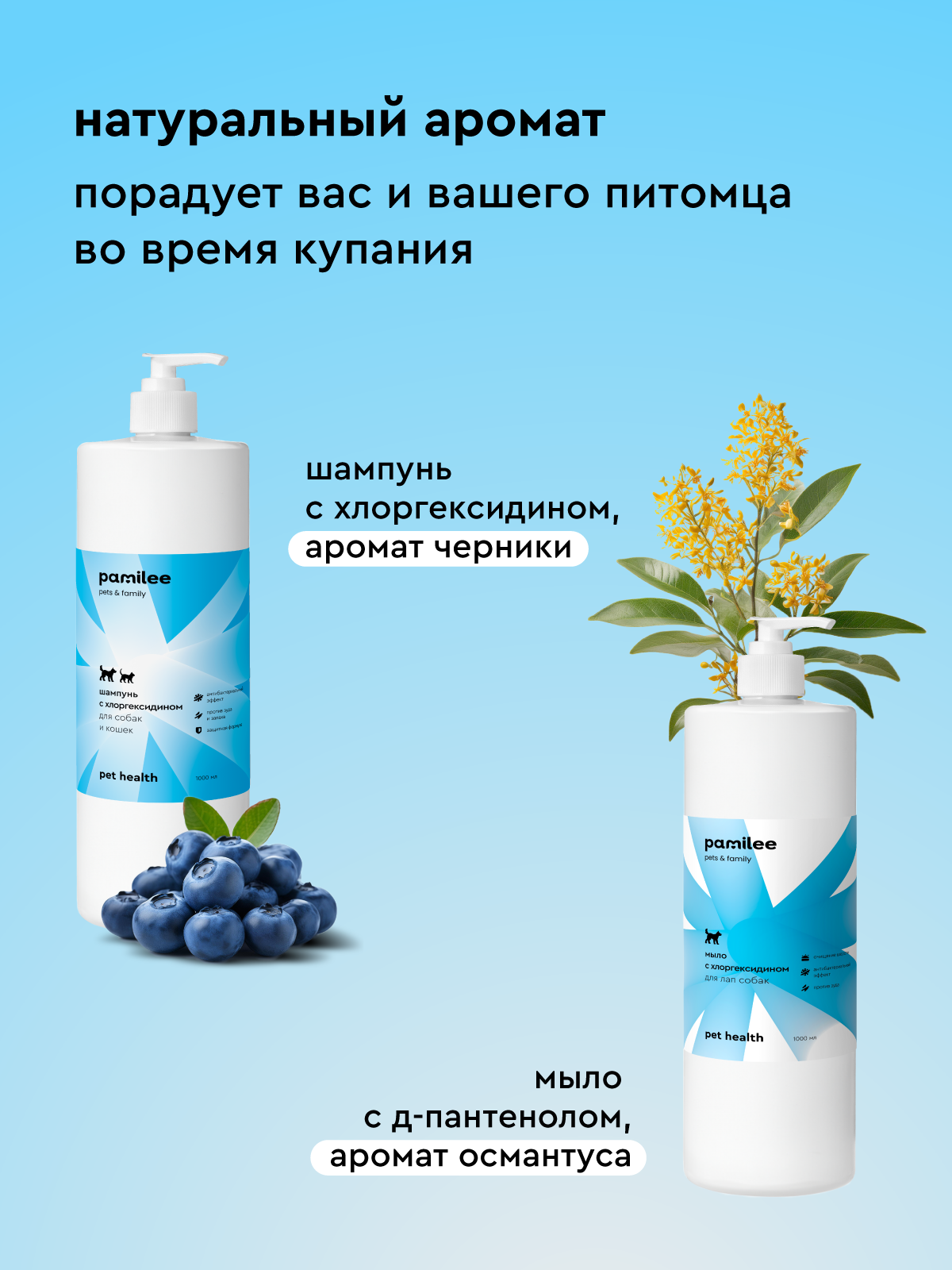 СохранитьШампунь + мыло для собак и кошек с хлоргексидином 2%, гипоаллергенные, профессиональные, Pamilee интересное: