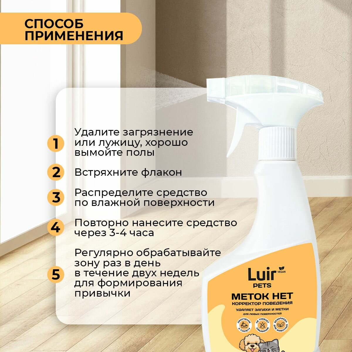 Антигадин Меток Нет от запаха кошек и собак Luir Pets, 500 мл интересное:
