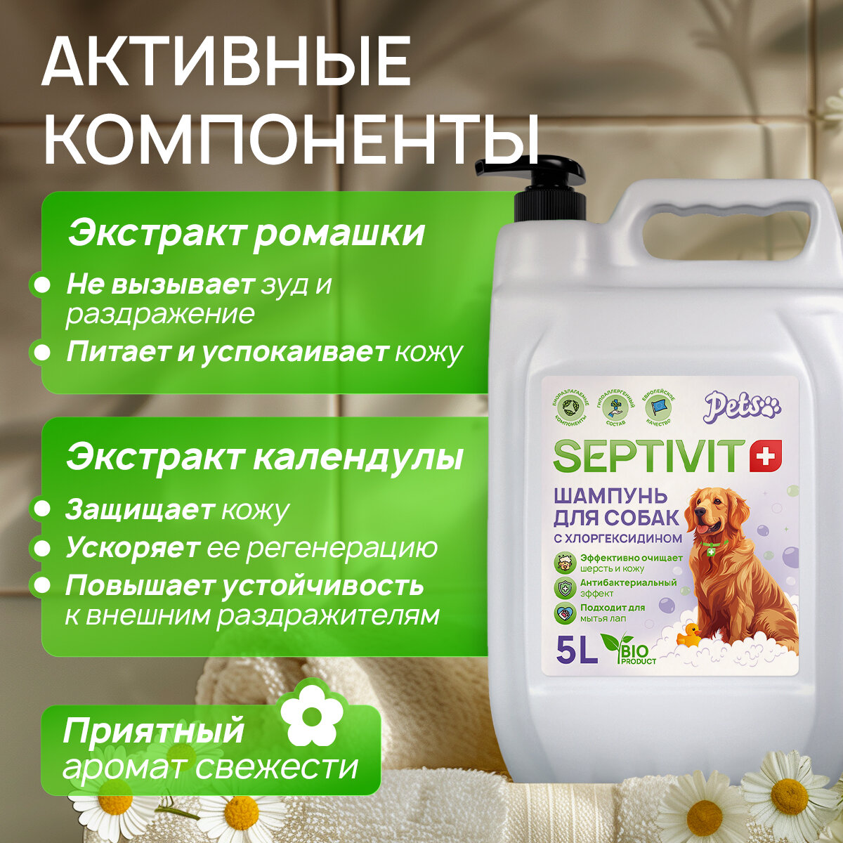 Шампунь для собак с хлоргексидином 5 л Septivit интересное: