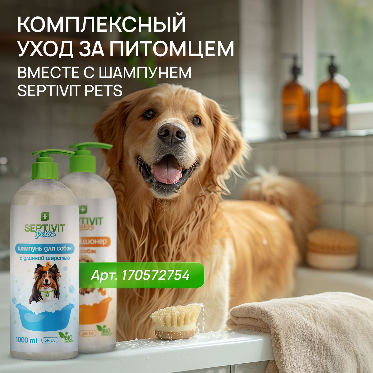 Набор для собак Septivit / Шампунь для собак с длинной шерстью 1л + Кондиционер для собак 1л