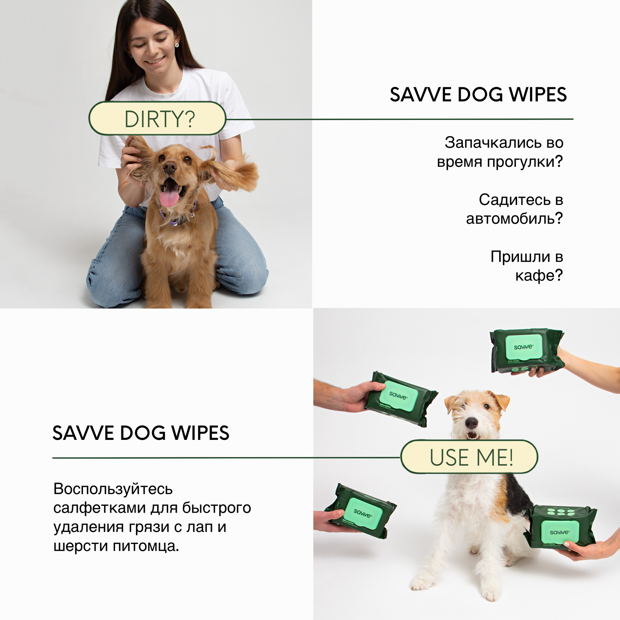 Купить Салфетки для собак SAVVE DOG WIPES, салфетки для шерсти и лап, 80шт