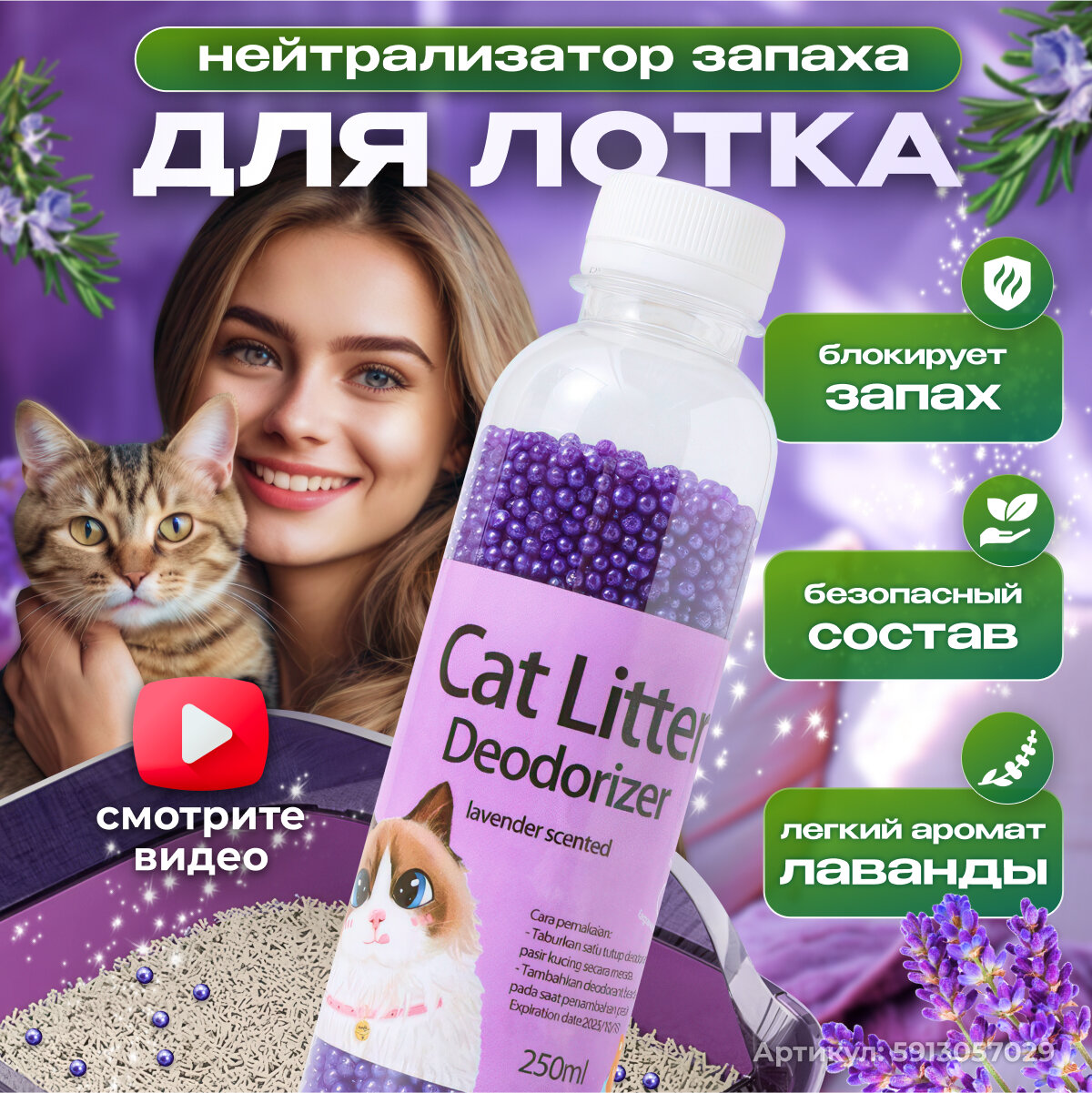 Купить Нейтрализатор запаха кошачьей мочи, ликвидатор запаха для кошачьего туалета в наполнитель, лаванда, 250мл
