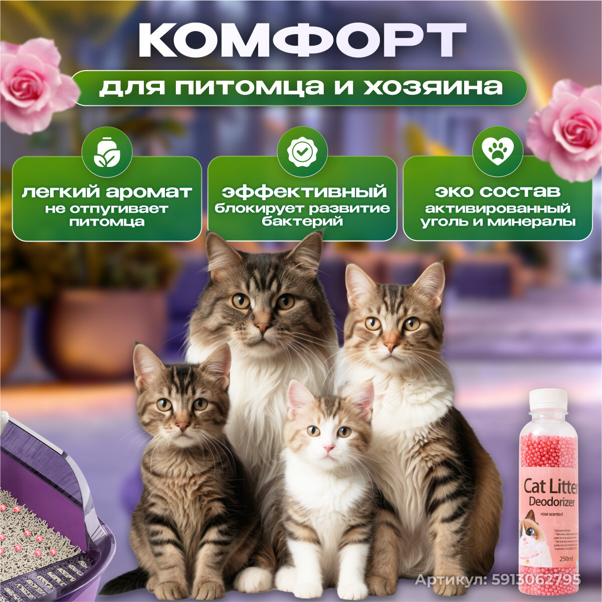 СохранитьНейтрализатор запаха кошачьей мочи, ликвидатор запаха для кошачьего туалета в наполнитель, роза, 250мл интересное: