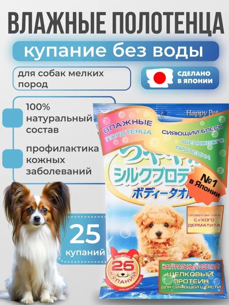 Шампуневые полотенца Japan Premium Pet экспресс-купание без воды с коллагеном и плацентой для маленьких и средних собак, 25 шт