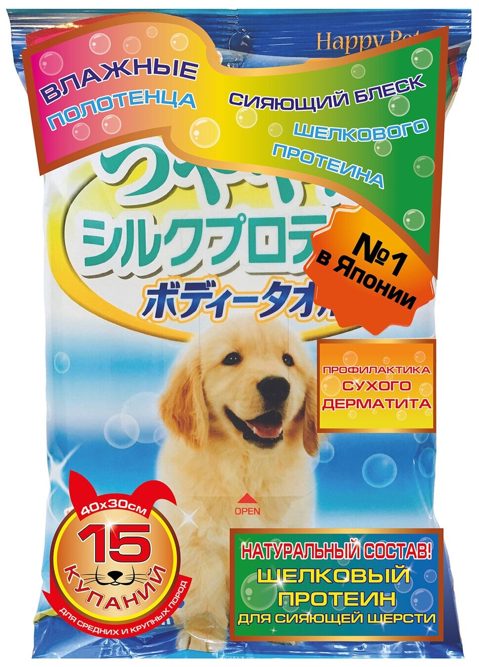 Купить Шампуневые полотенца Japan Premium Pet экспресс-купание без воды с функцией профилактики кожной аллергии и сухого дерматита с шелковым протеином и экстрактом меда для крупных собак, 15 шт