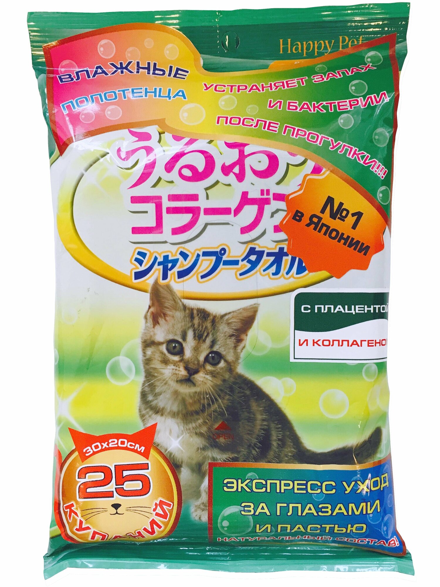 Купить Шампуневые полотенца Japan Premium Pet экспресс-купание без воды с коллагеном и плацентой для кошек, 25 шт