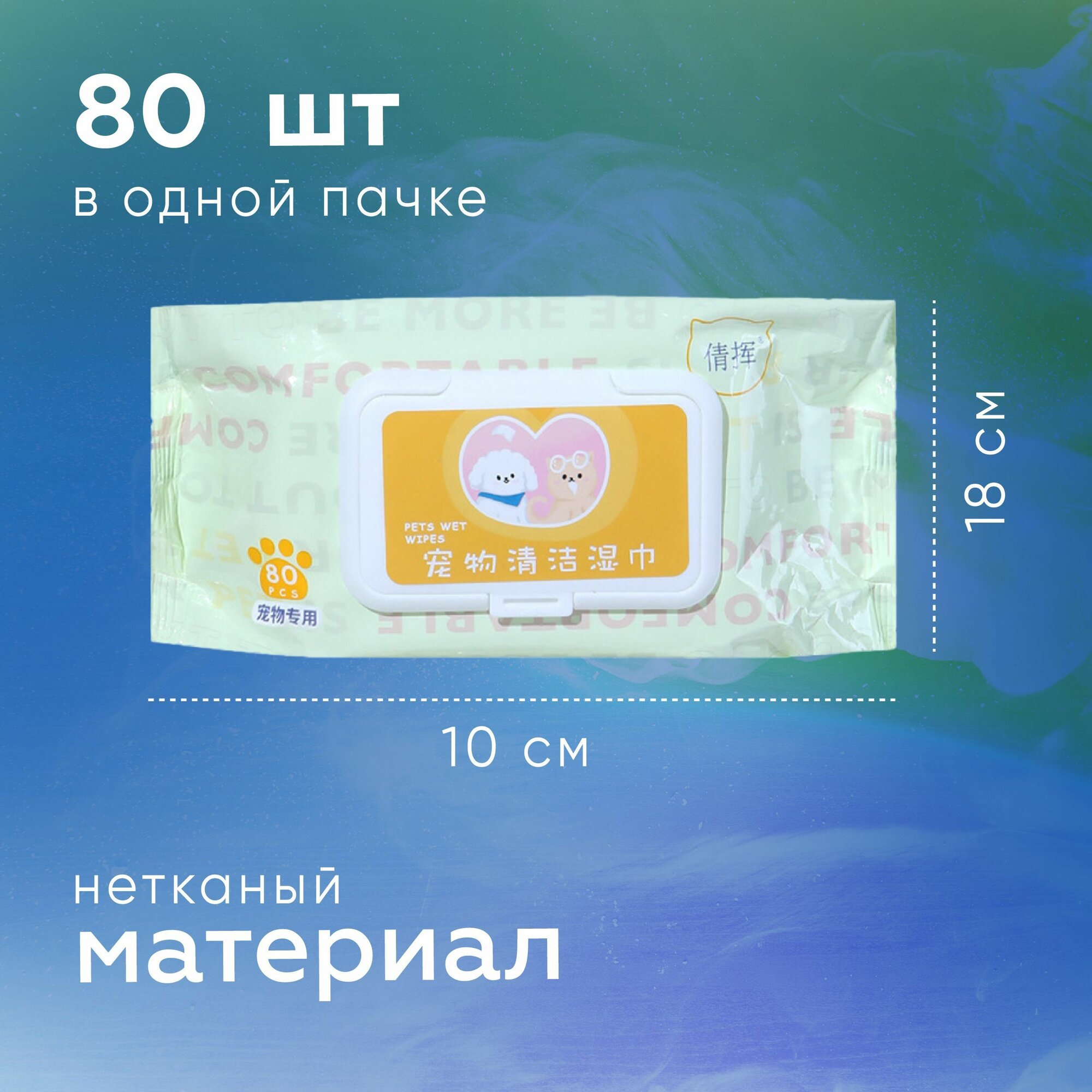 Влажные салфетки No Brand "Домашние животные", для кошек и собак, 80шт интересное:
