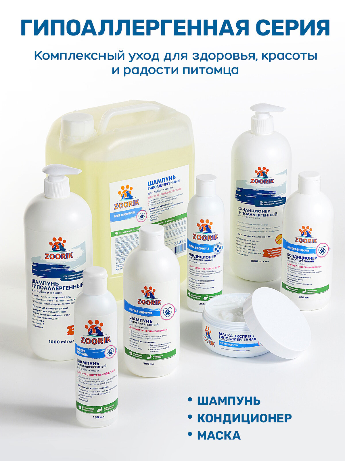 Шампунь для собак и кошек / ZOORIK / Зурик / гипоаллергенный 5 л интересное:
