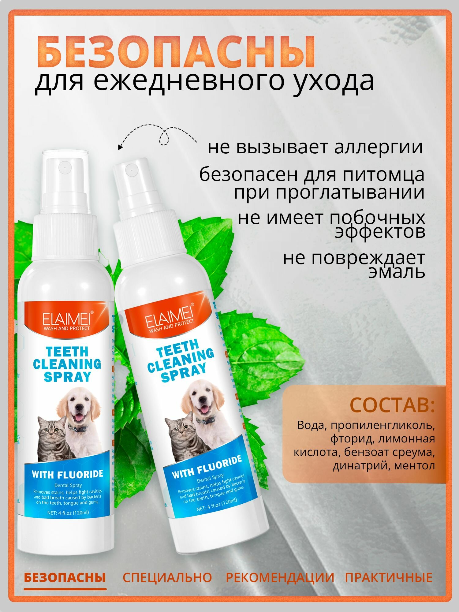 Спрей для полости рта домашних животных, для собак и кошек, 120 мл интересное: