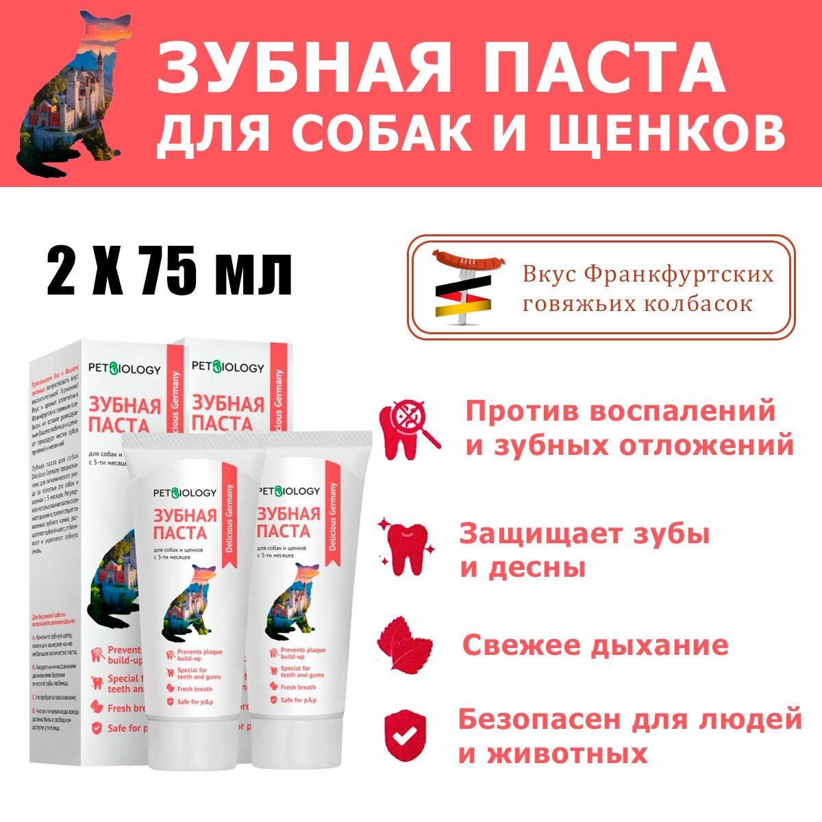 Зубная паста для собак и щенков PetBiology, Delicious Germany, 2 уп. по 75 мл интересное: