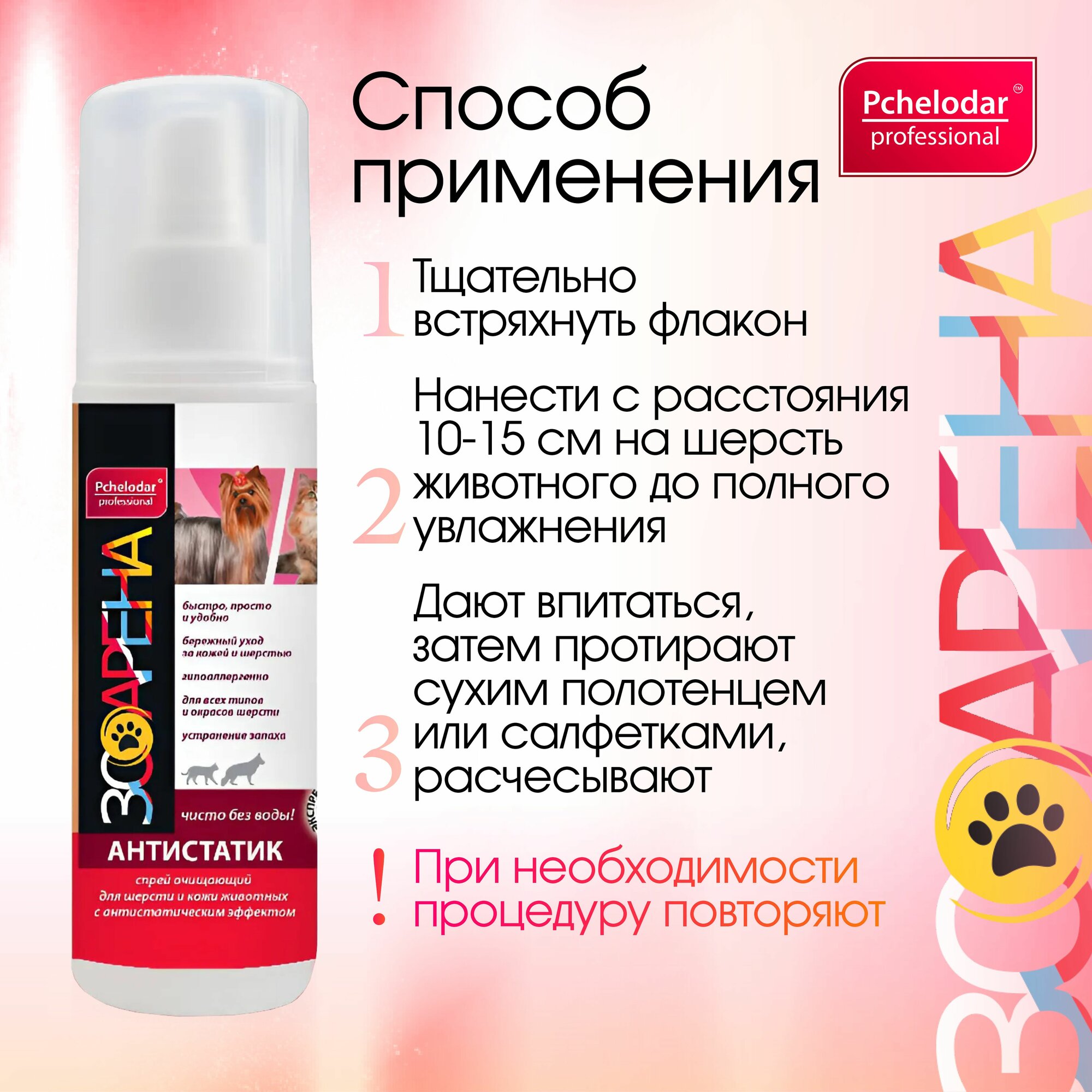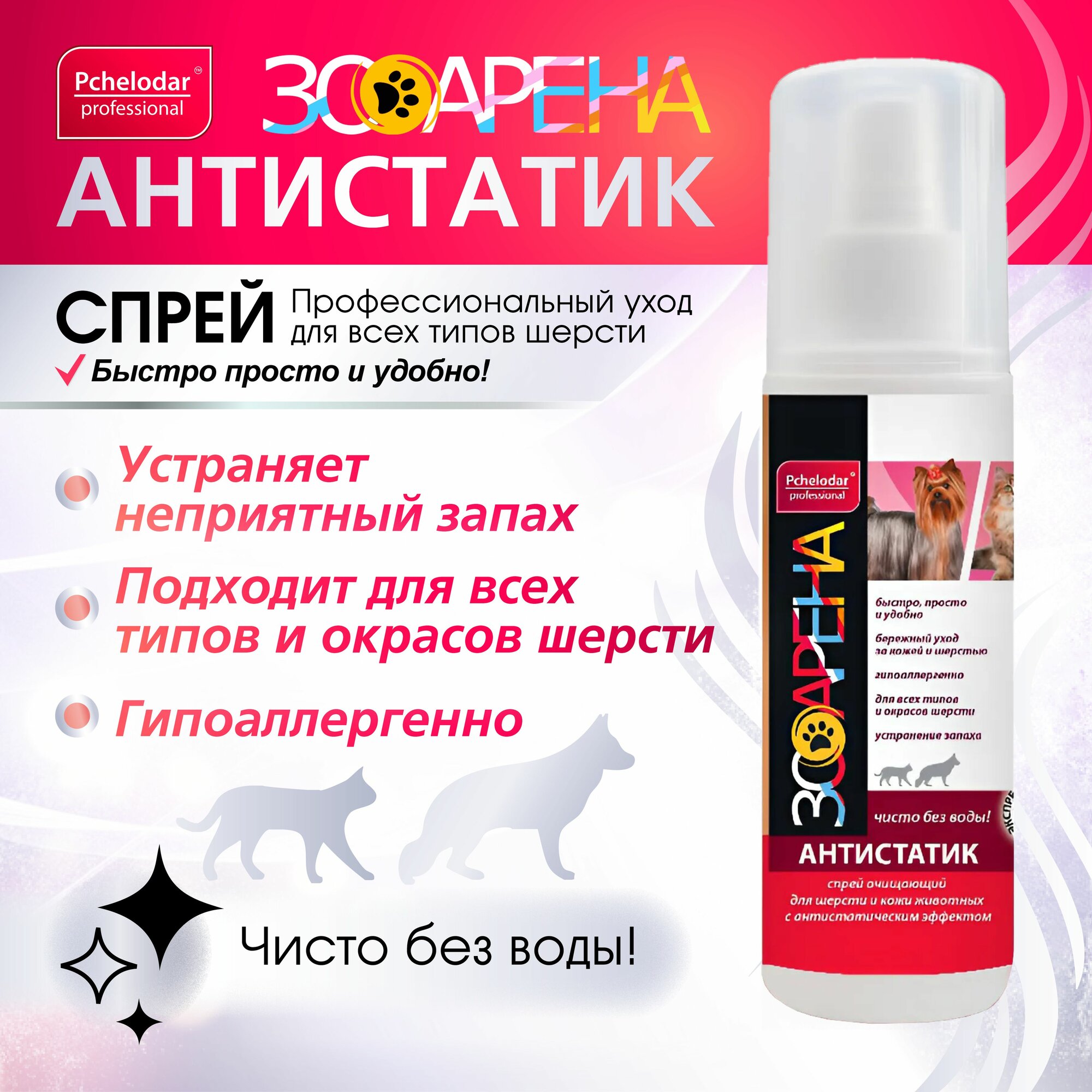 Антистатик для кошек и собак, гипоаллергенный, предотвращение появления колтунов, 125 мл, Пчелодар интересное:
