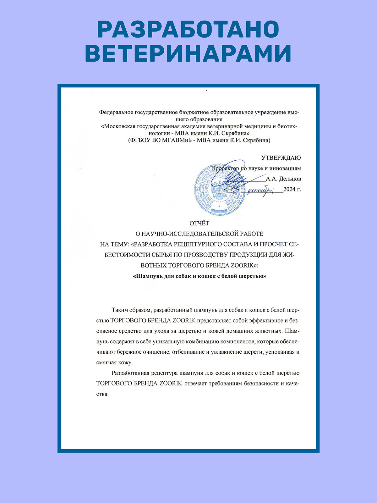 Шампунь для собак и кошек / ZOORIK / Зурик / с белой шерстью 1000 мл интересное: