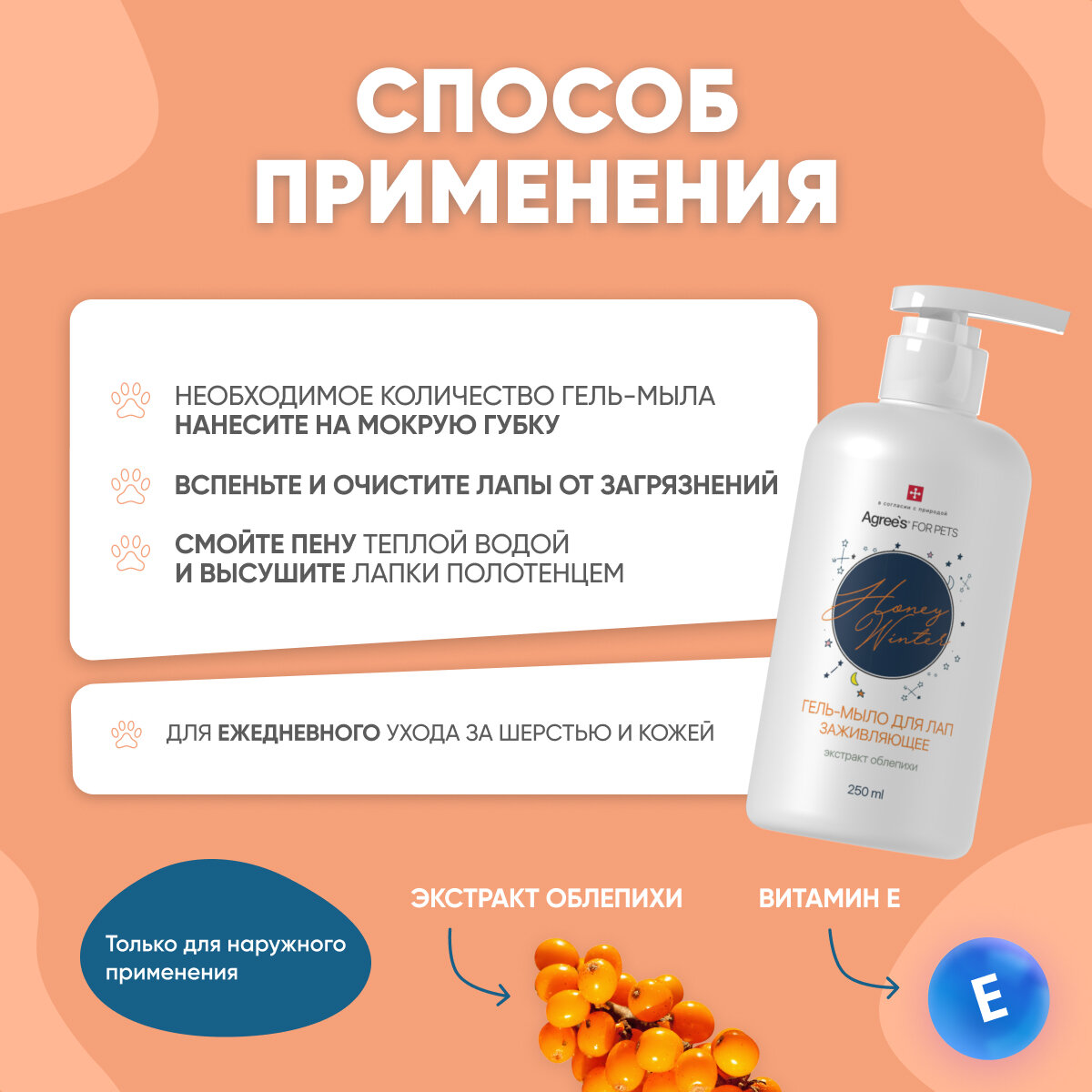 Гель-мыло Agree's Pets для лап с экстрактом облепихи 250мл интересное: