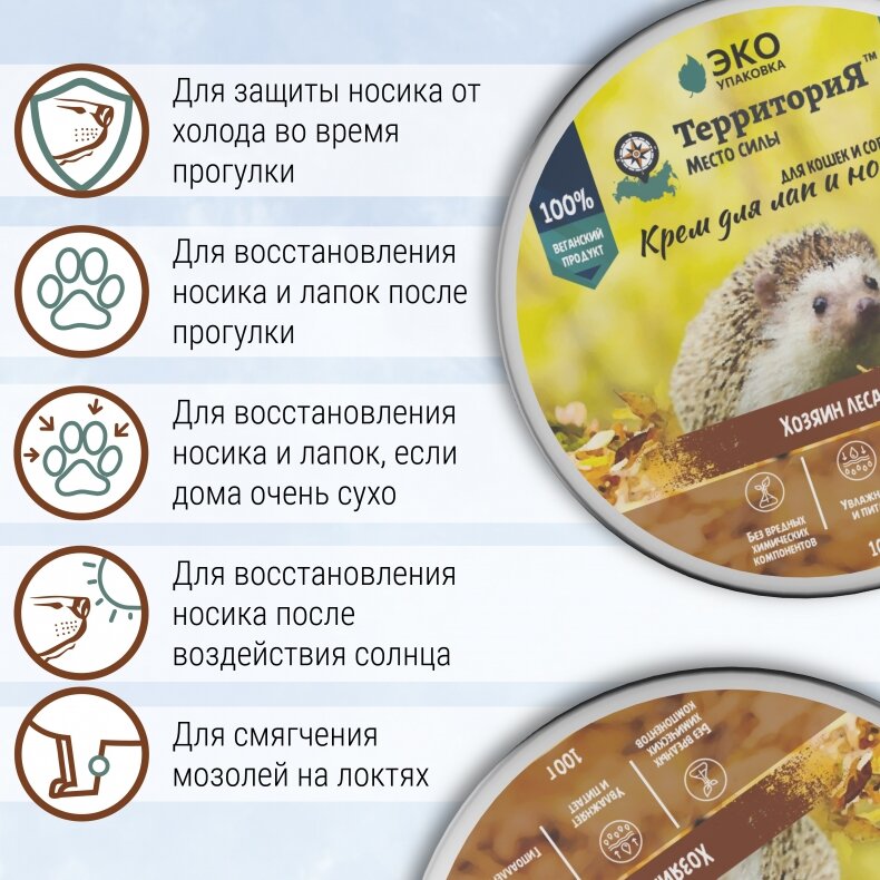 ТерриториЯ "Хозяин леса" крем для лап и носа для собак и кошек 100мл интересное: