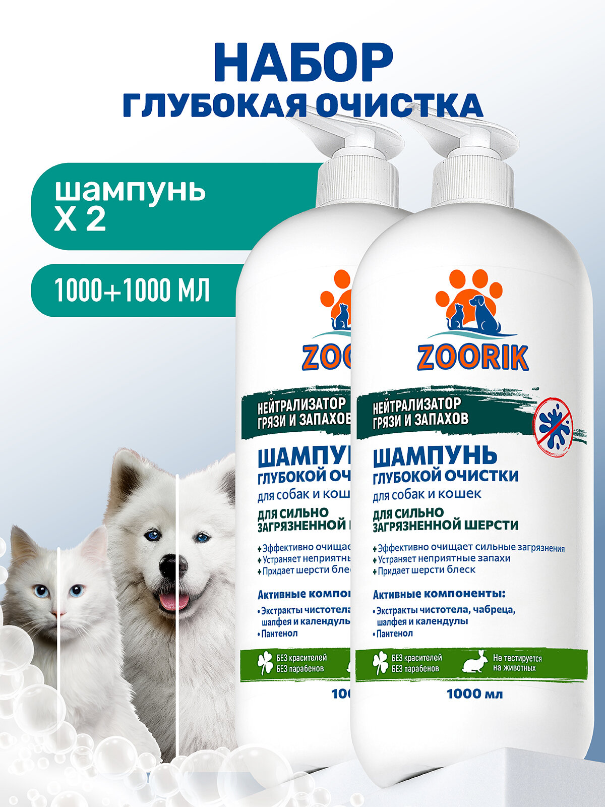Купить Шампунь для собак и кошек / ZOORIK / Зурик / глубокой очистки 1000 мл - 2 шт