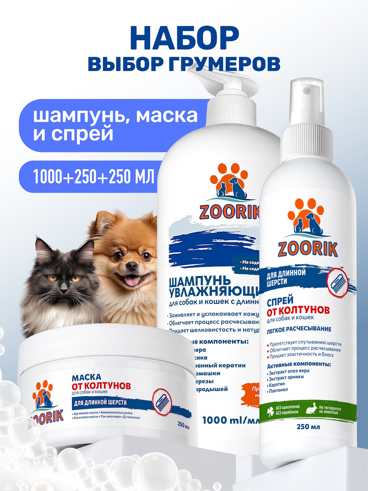 Купить Набор для длинной шерсти увлажняющий / ZOORIK / Зурик / шампунь + маска + спрей 1000+250+250 мл