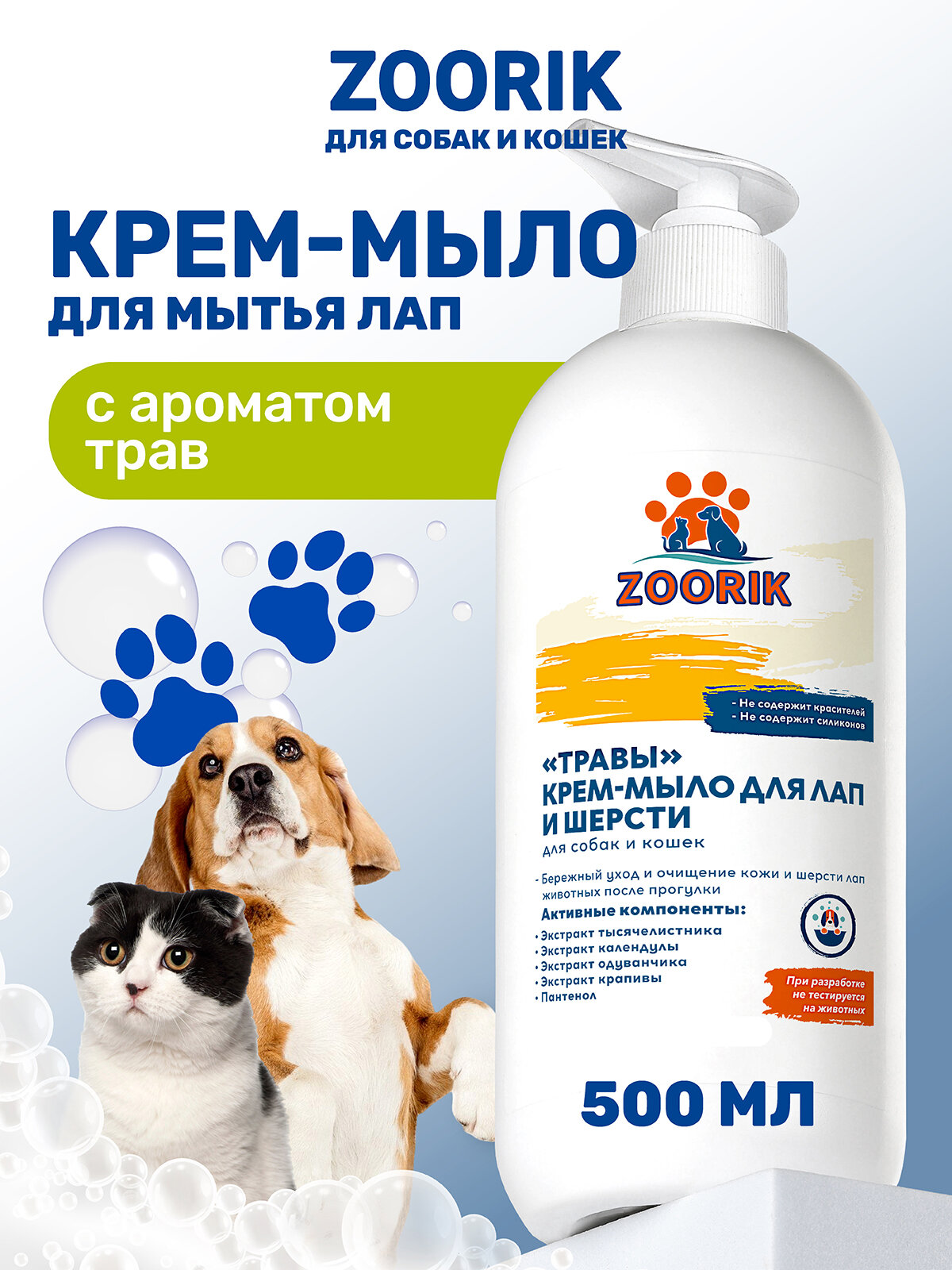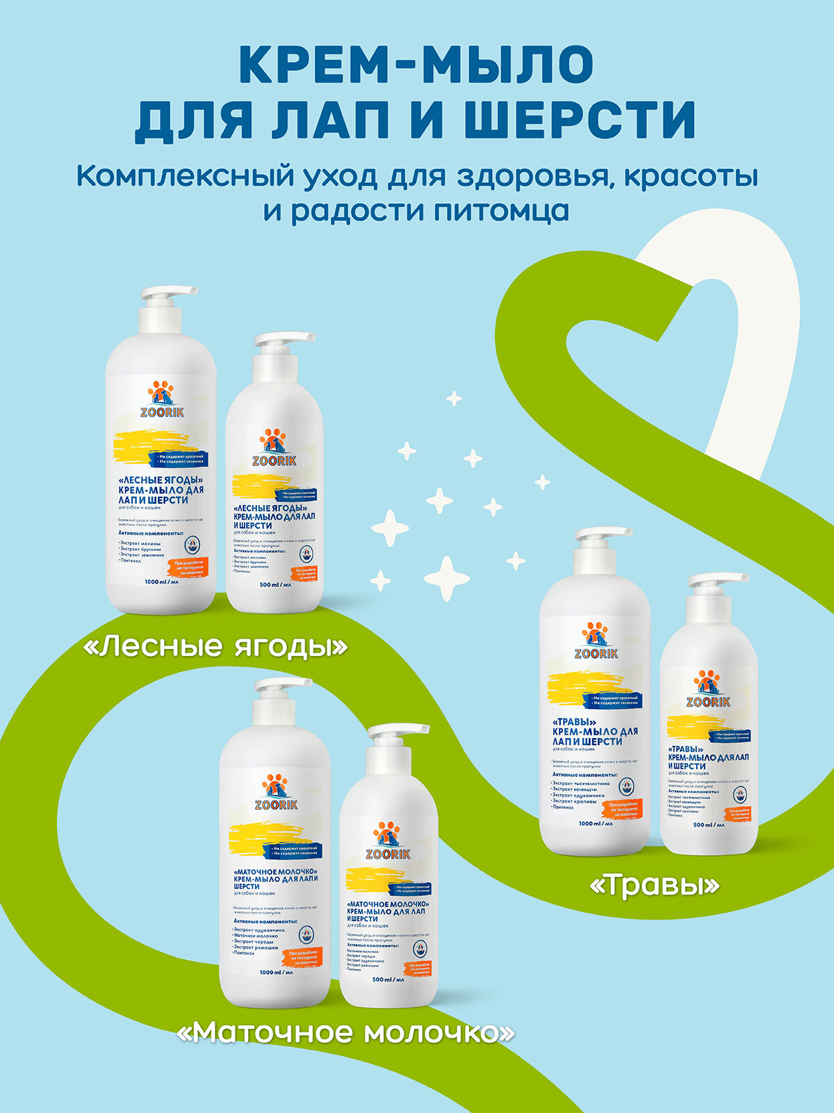 Крем-мыло для лап и шерсти / ZOORIK / Зурик / "травы" 500 мл интересное: