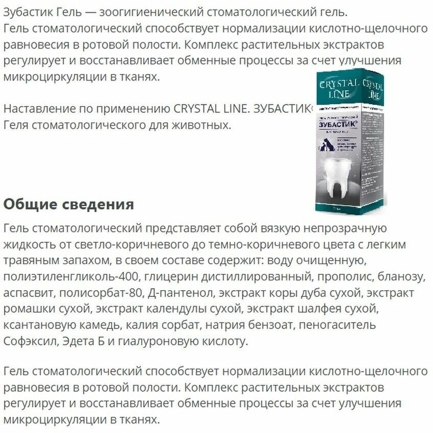 CRYSTAL LINE. Зубастик. Гель стоматологический для животных интересное:
