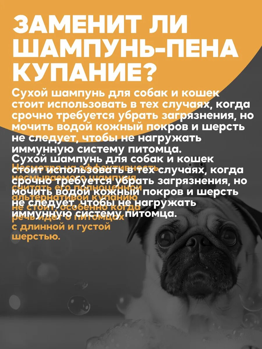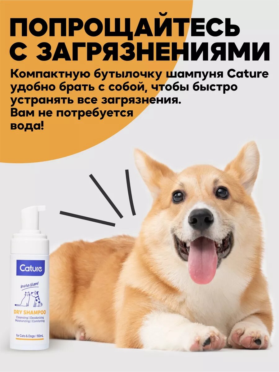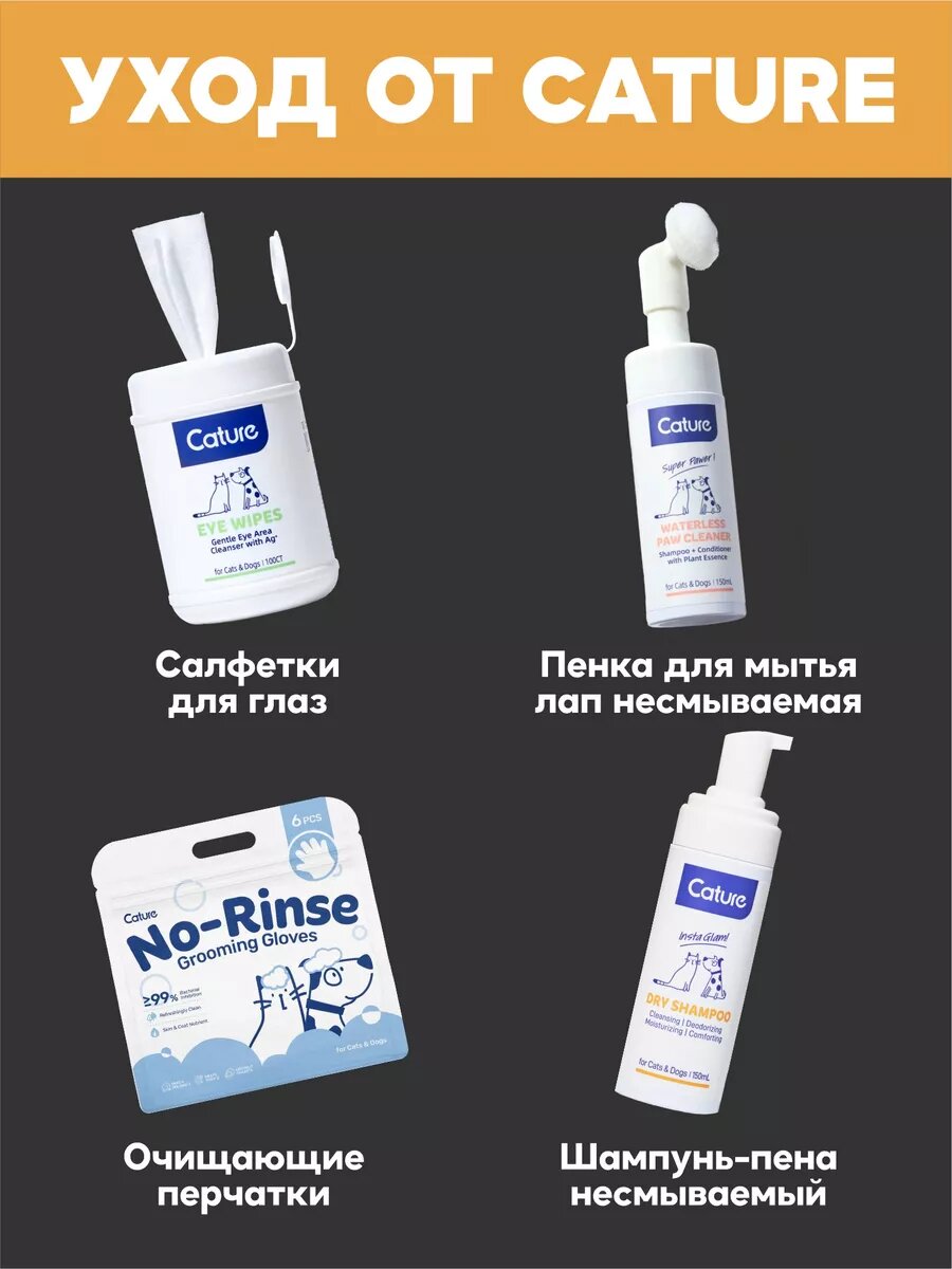 Несмываемый натуральный шампунь-пена Cature для животных, 150мл. интересное: