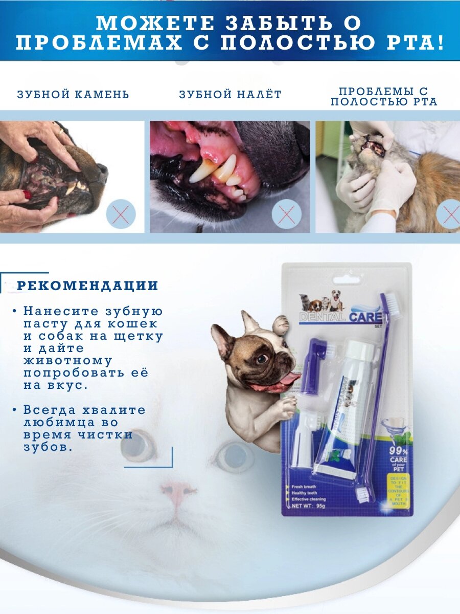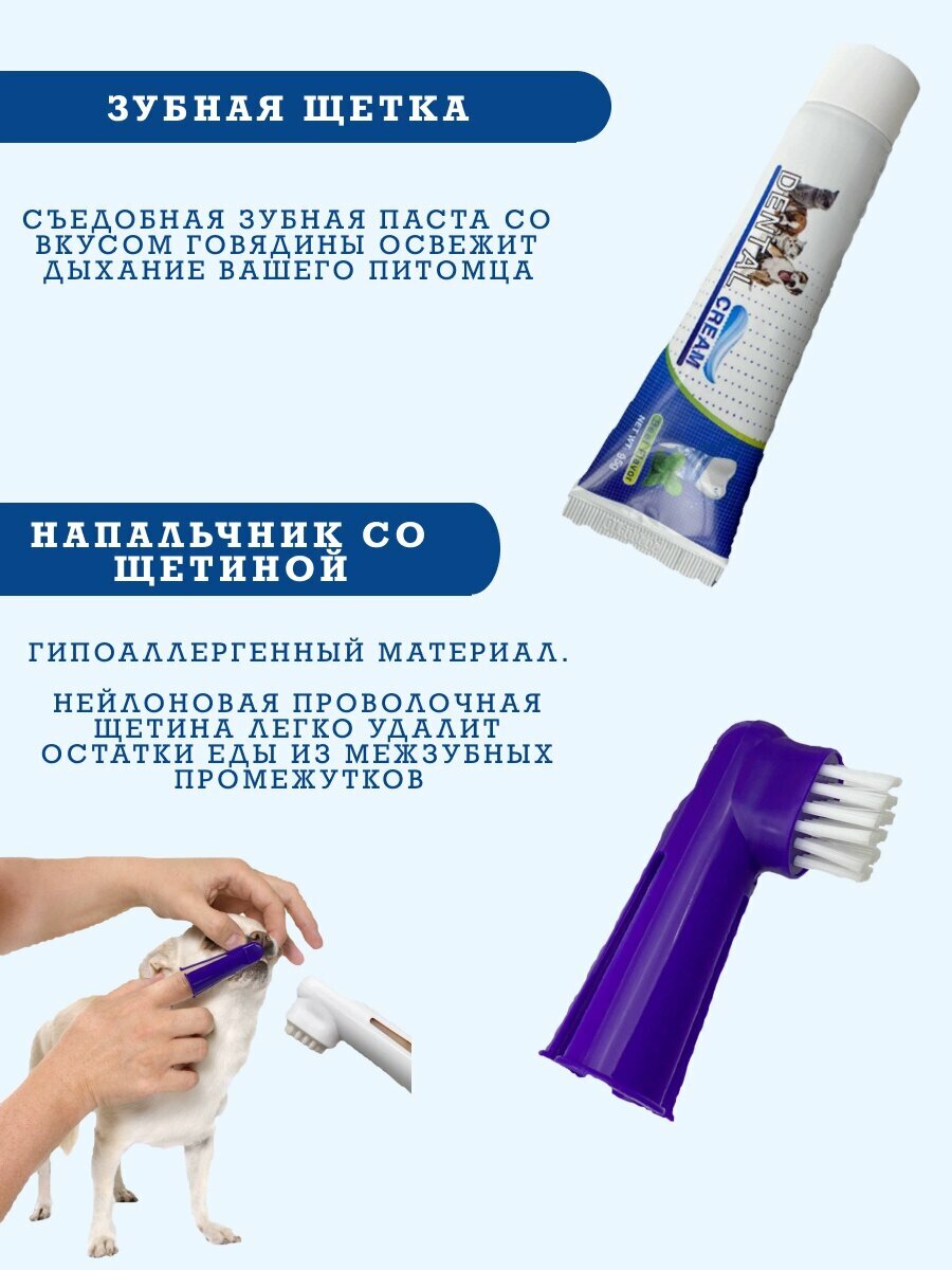 Набор для чистки/ Зубная паста и щетка для собак и кошек (вкус говядина), 95 мл. + щетки. с силиконовым напальчником. интересное: