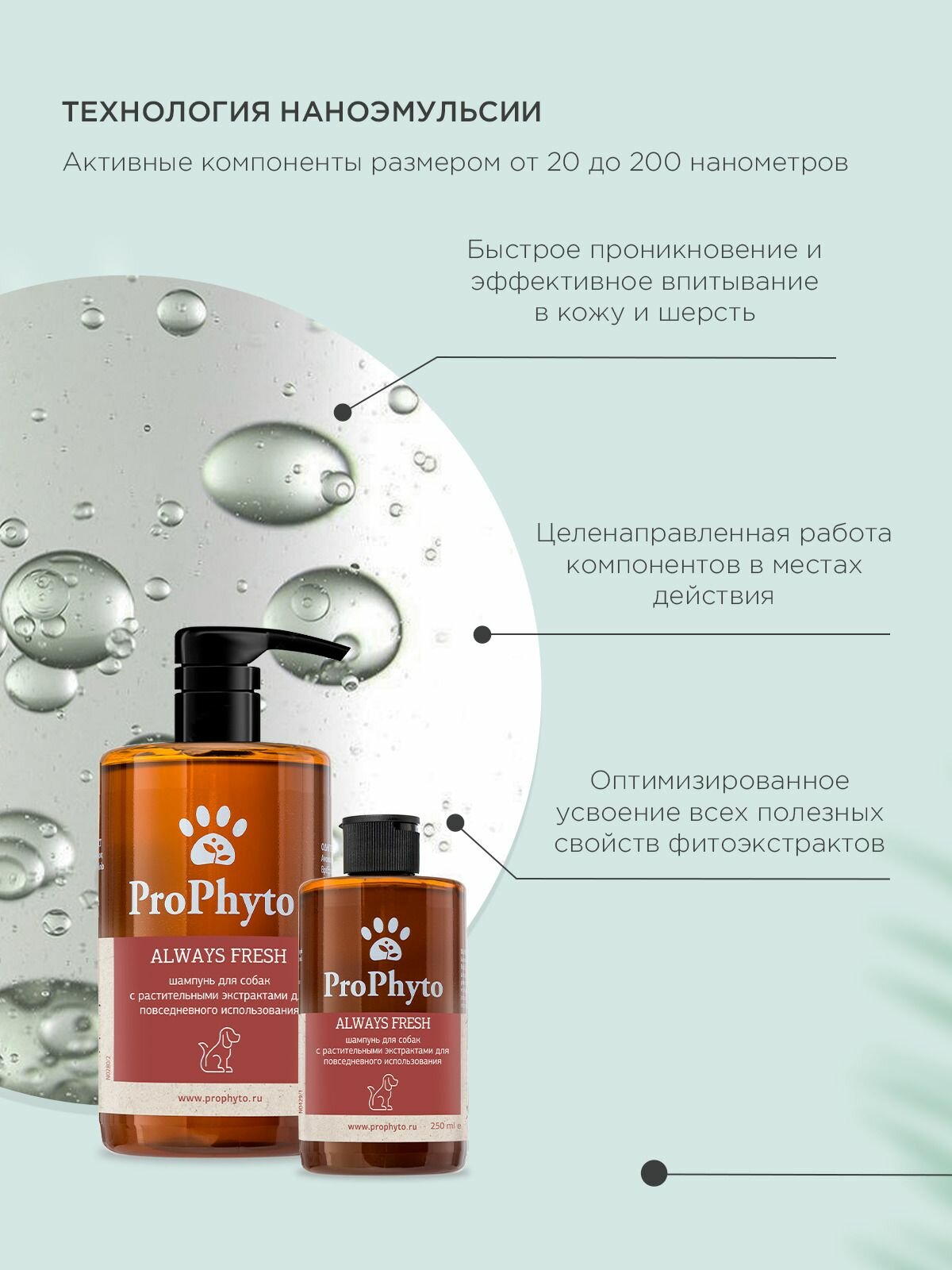Купить Шампунь ProPhyto ALWAYS FRESH для собак с растительными экстрактами для регулярного очищения кожи и шерсти, 500 мл