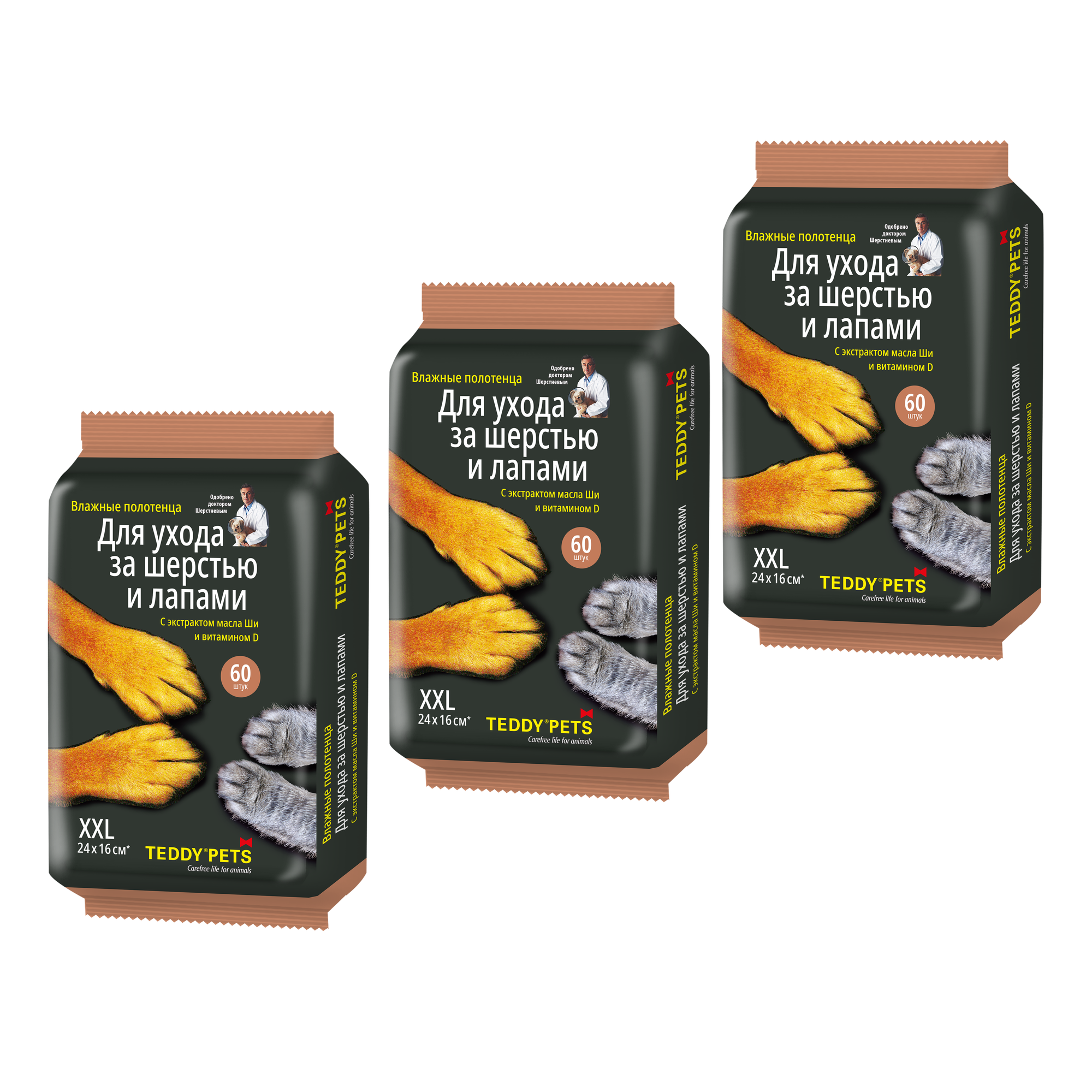 Teddy Pets №60 влажные полотенца д/шерсти и лап с маслом Ши и витамином D 3 уп. интересное: