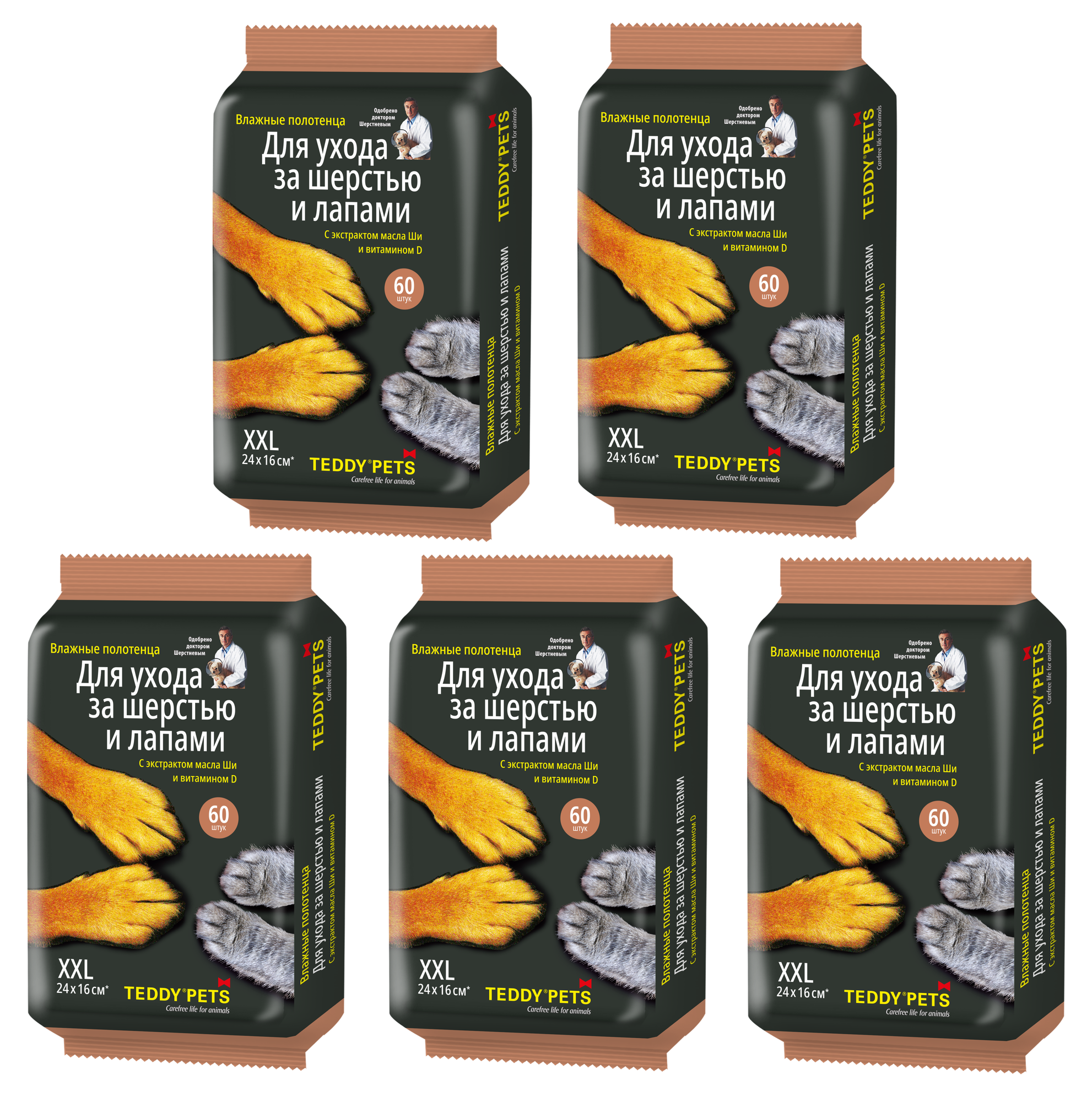 Купить Teddy Pets №60 влажные полотенца д/шерсти и лап с маслом Ши и витамином D 5 уп.