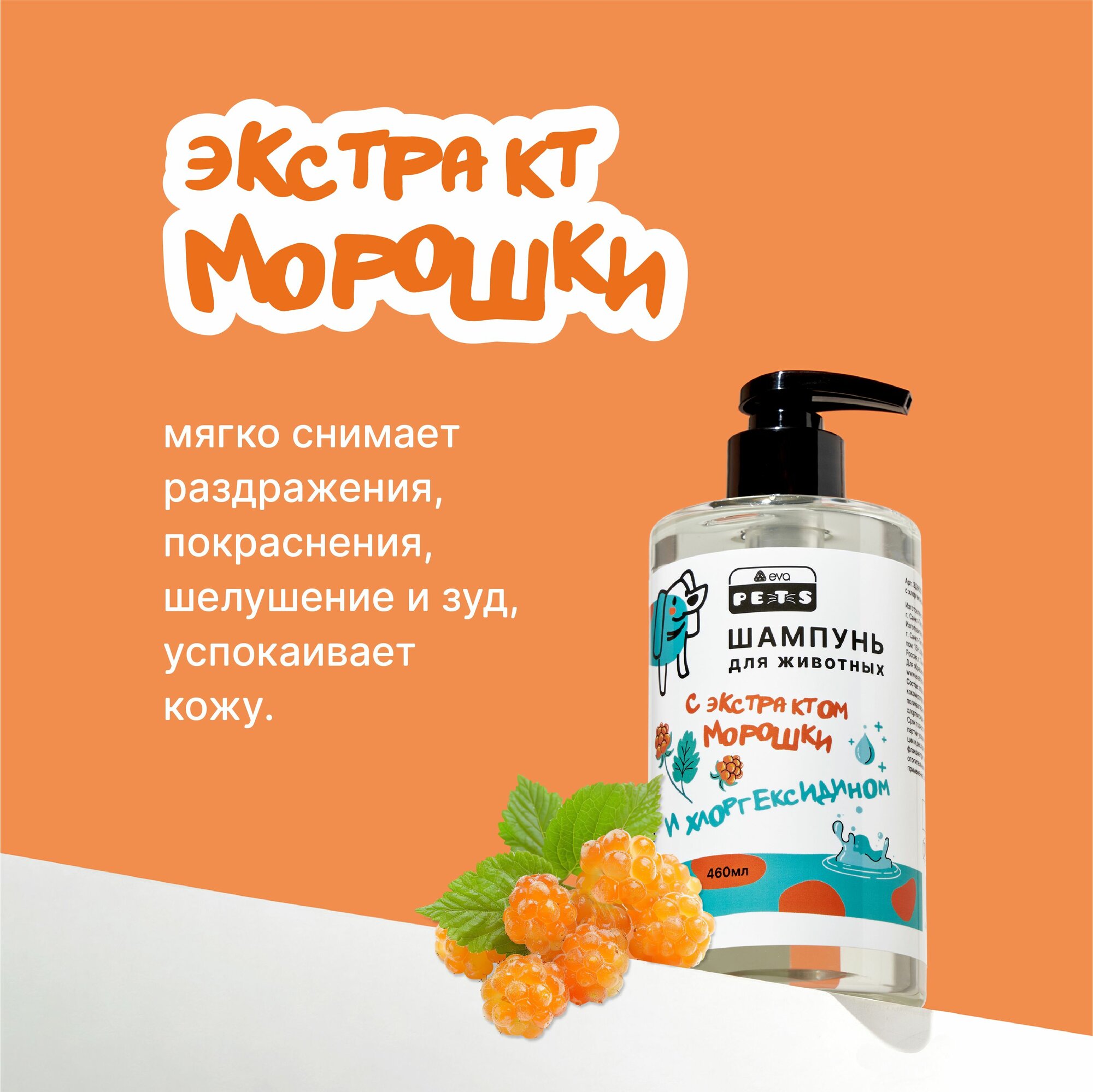 Купить Шампунь для собак и кошек с хлоргексидином, для любой шерсти, с экстрактом морошки, универсальный, 460мл