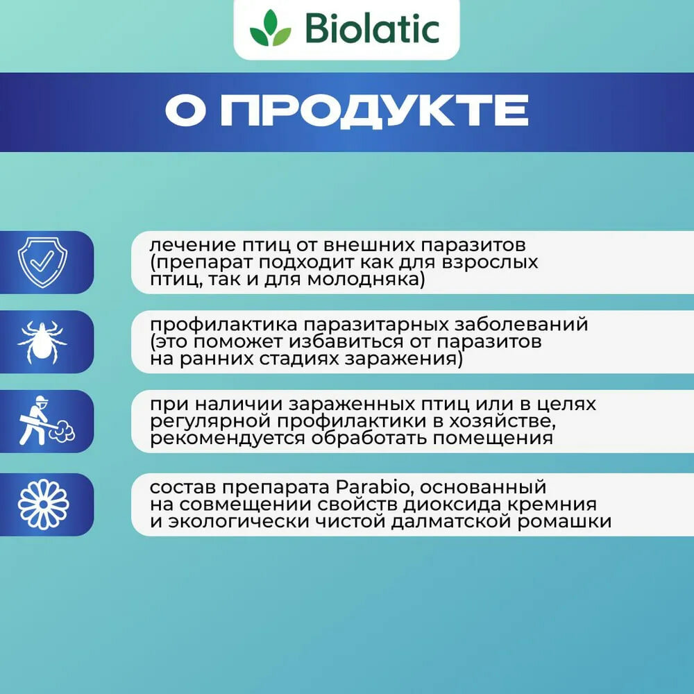 ПараБио (PARABIO) от пухопероеда противопаразитарный спрей для птиц, 1л интересное: