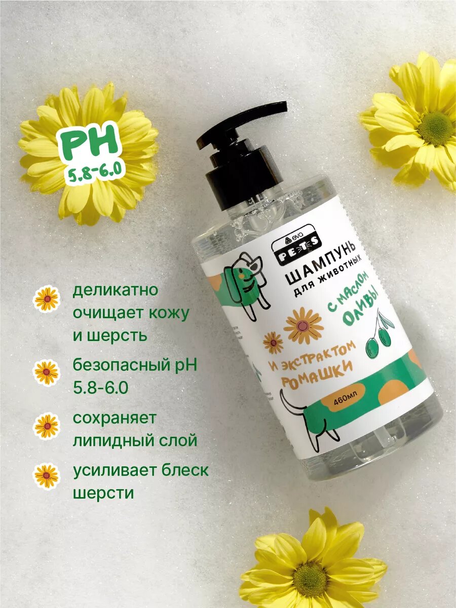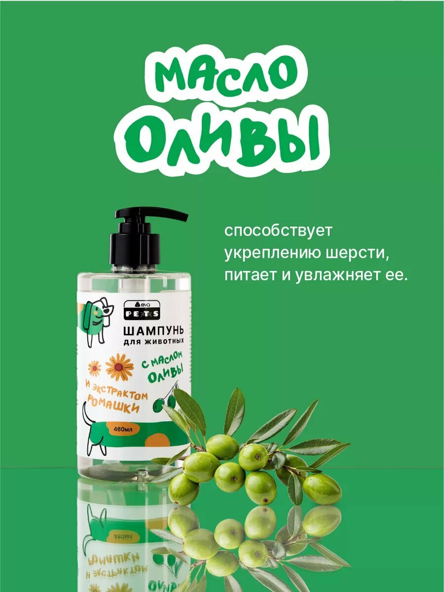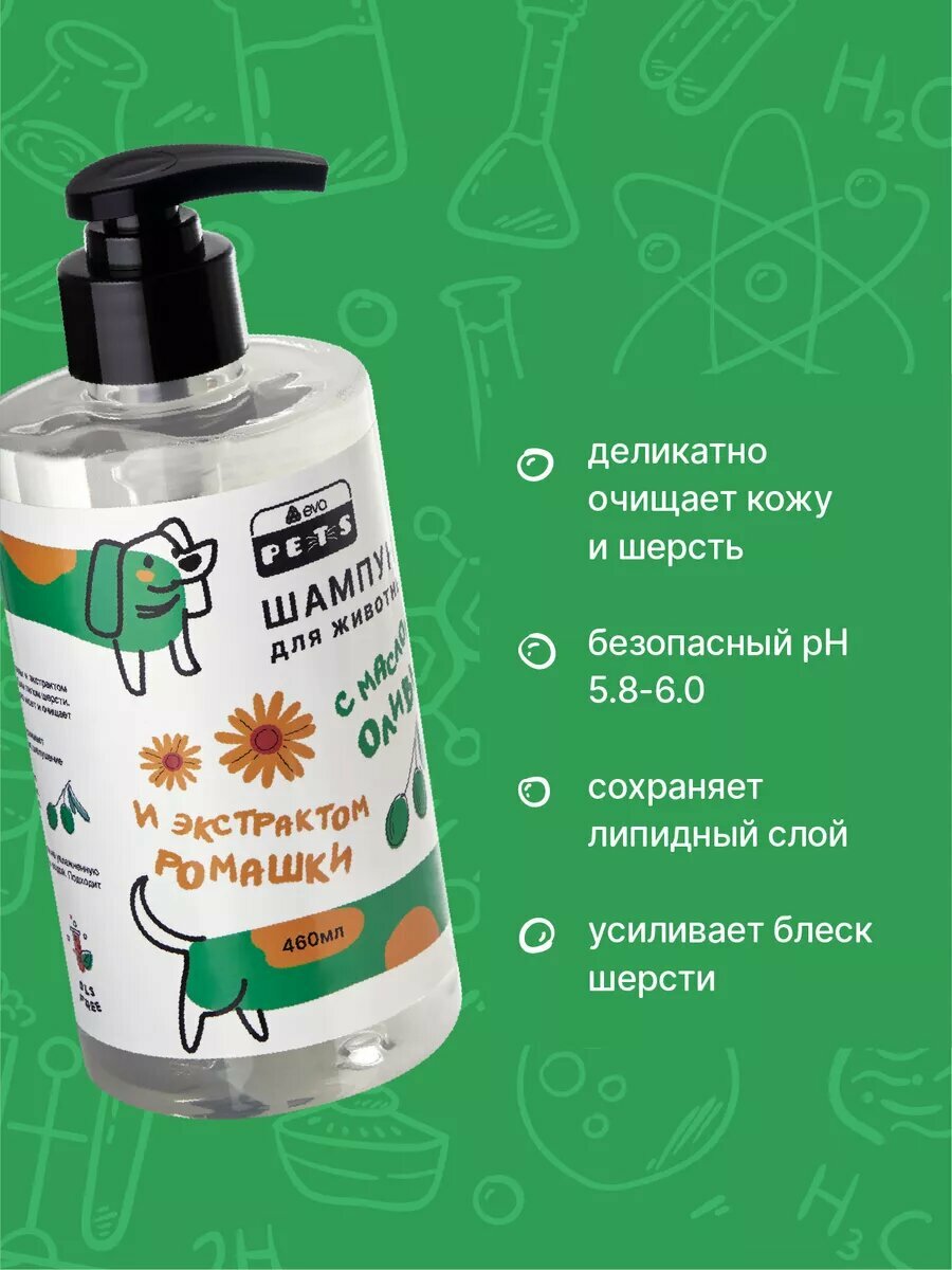 Шампунь для собак и кошек, EVA pets, для любой шерсти, гипоаллергенный, успокаивающий, с ромашкой, 460 мл. интересное: