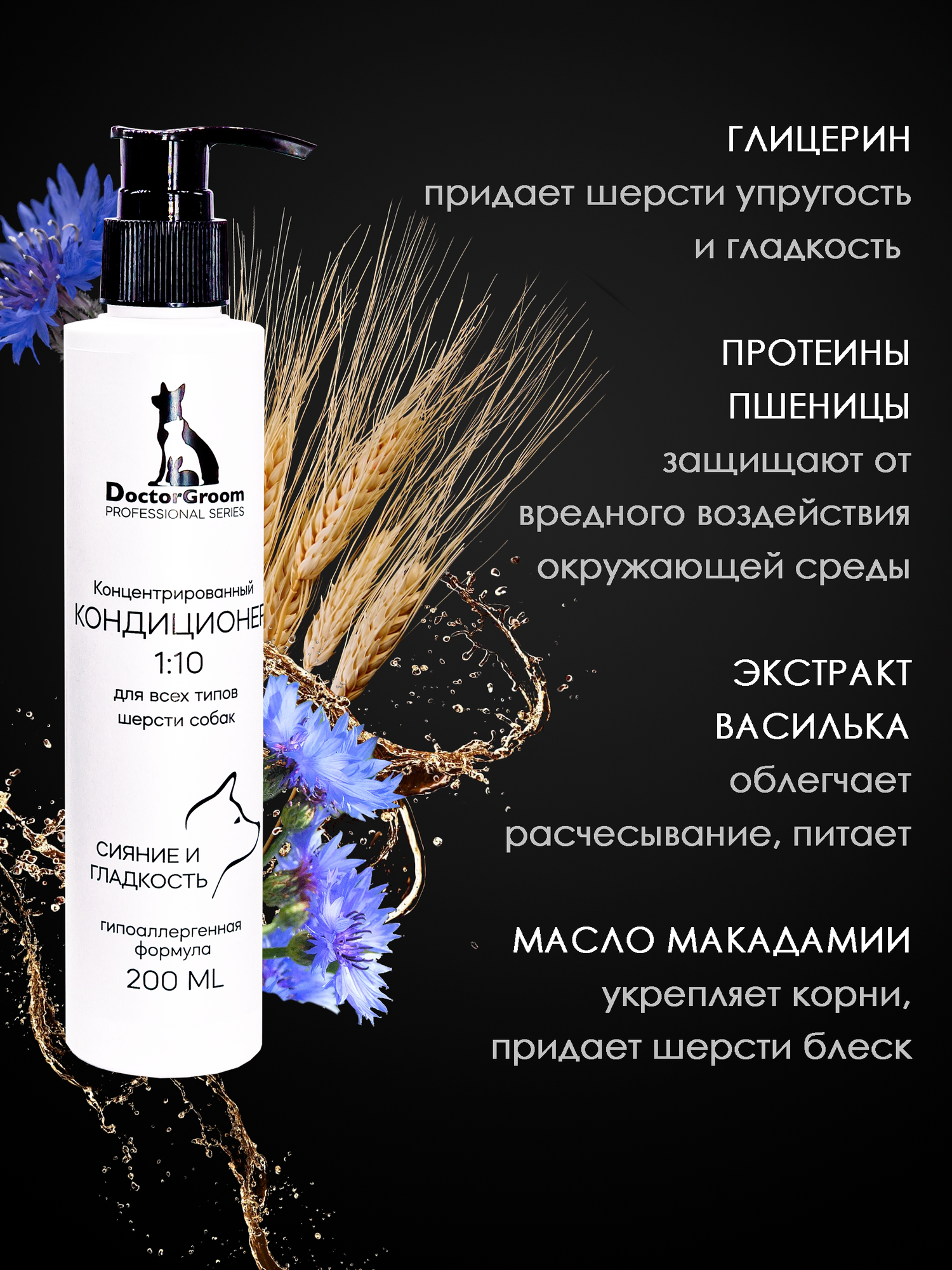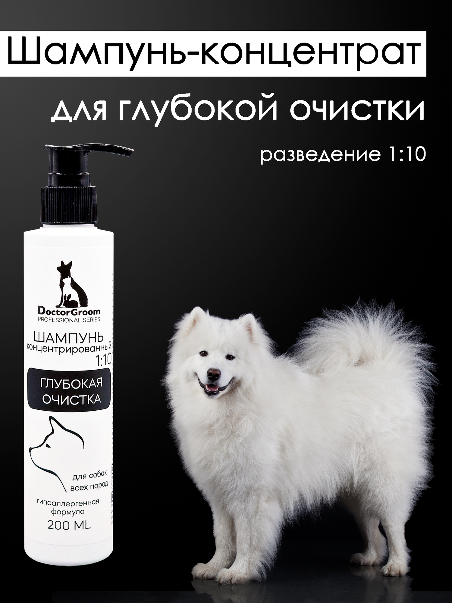 Шампунь для белой шерсти собак Doctor Groom, для светлых окрасов, увлажняющий, гипоаллергенный, универсальный, для всех пород и типов шерсти, 200мл