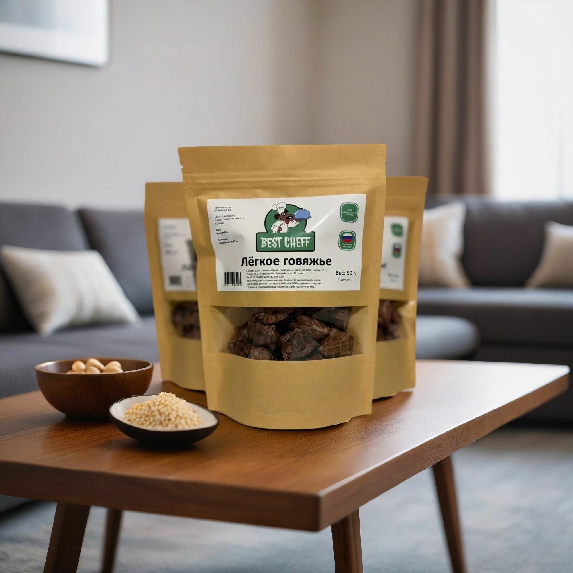 Легкое говяжье - Кубики 2-3 см, 50 грамм. Лакомство сушеное для собак и кошек. интересное: