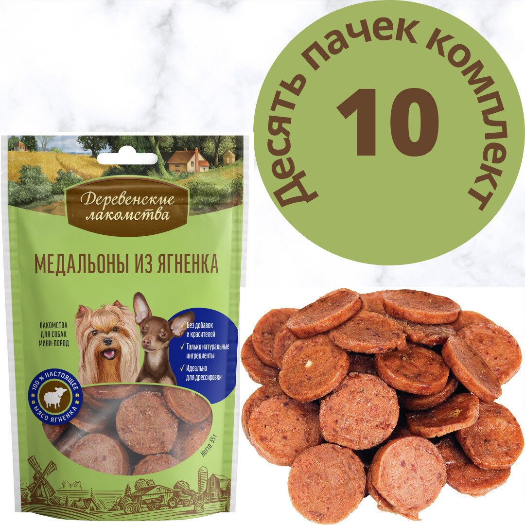 Деревенские лакомства для мини-пород Медальоны из ягненка 10шт упаковка интересное: