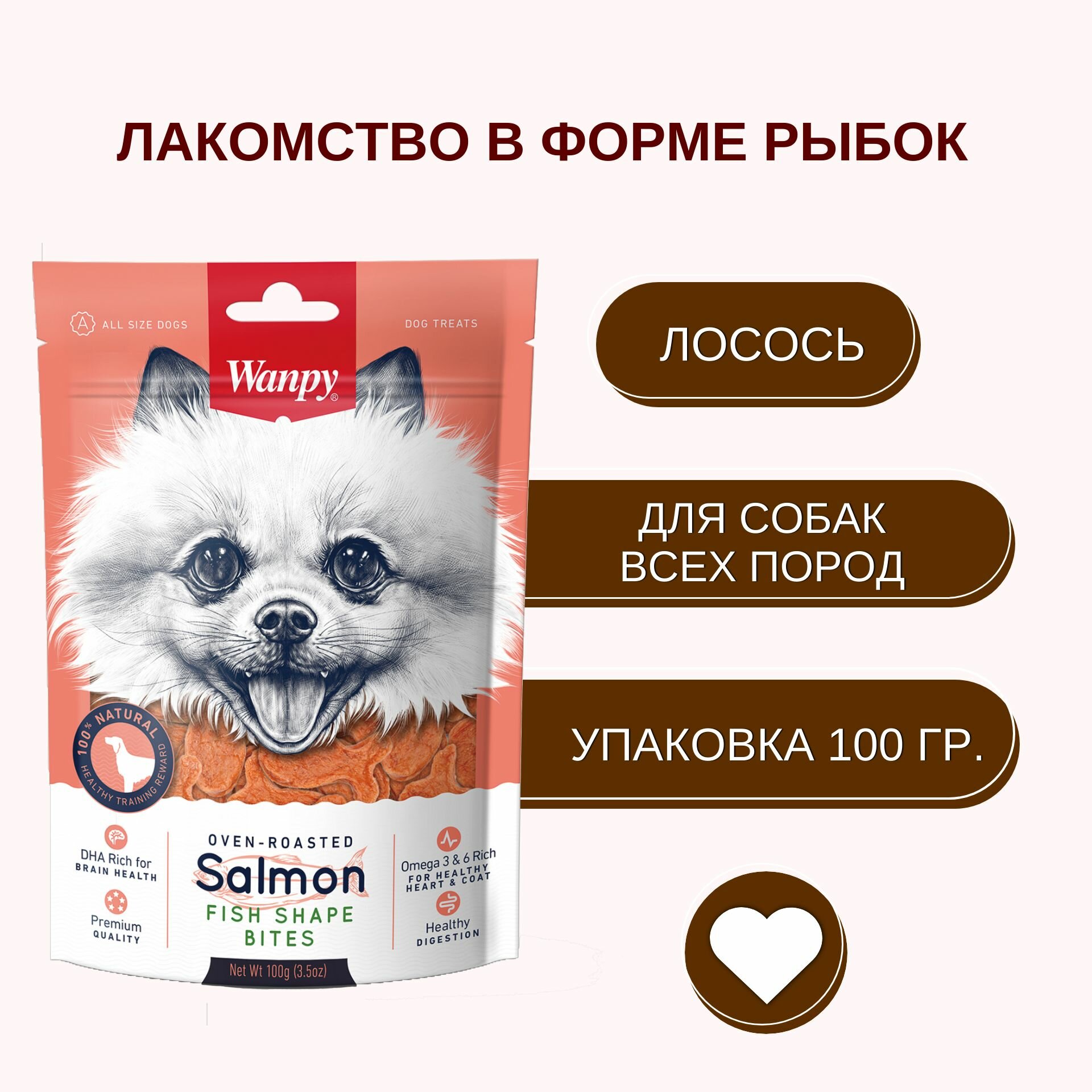 Лакомство Wanpy кусочки из лосося в форме рыбок, для собак всех пород 100 г*3 шт интересное: