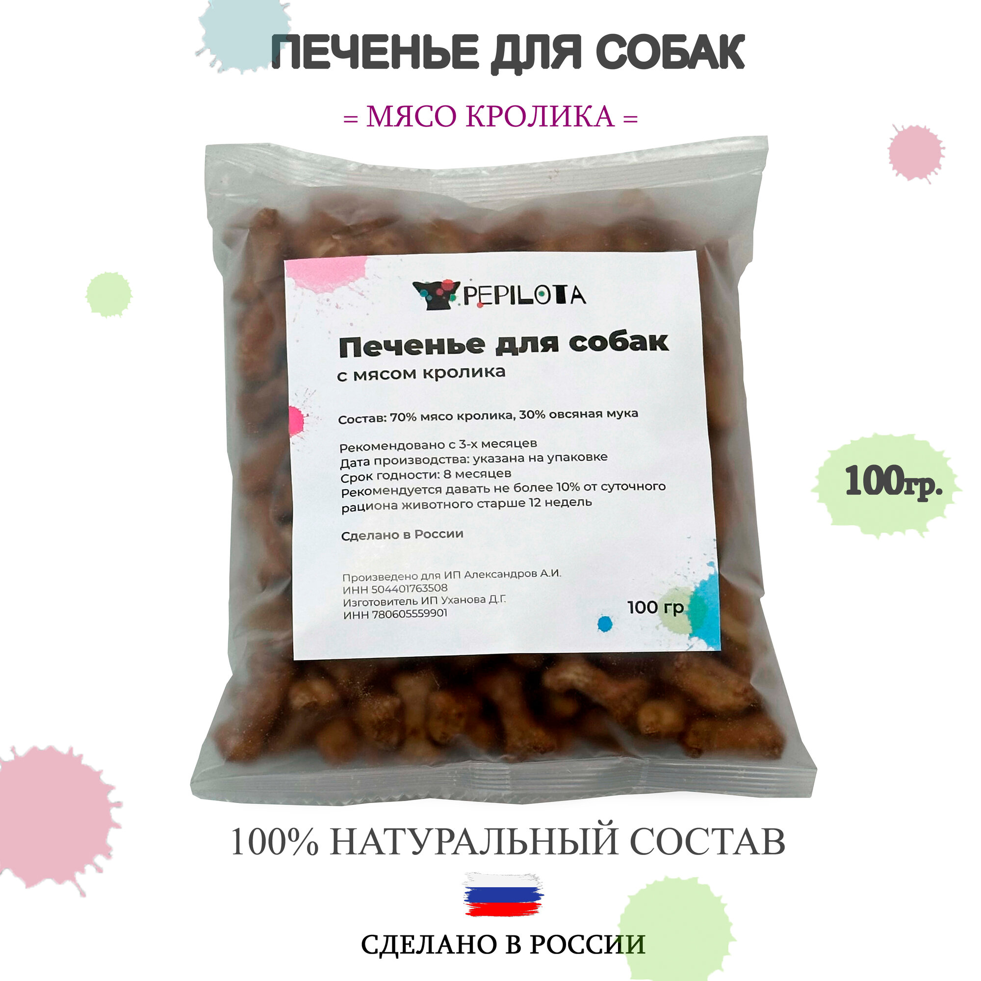 Лакомство для собак PEPILOTA, печенье Кролик, для дрессировки, 100гр. интересное: