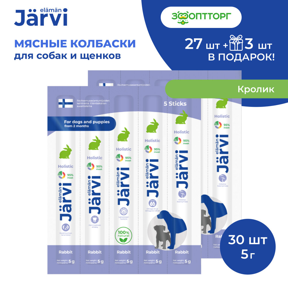 Купить Jarvi мясные колбаски для щенков и собак с кроликом 30 упаковки по 1 шт.