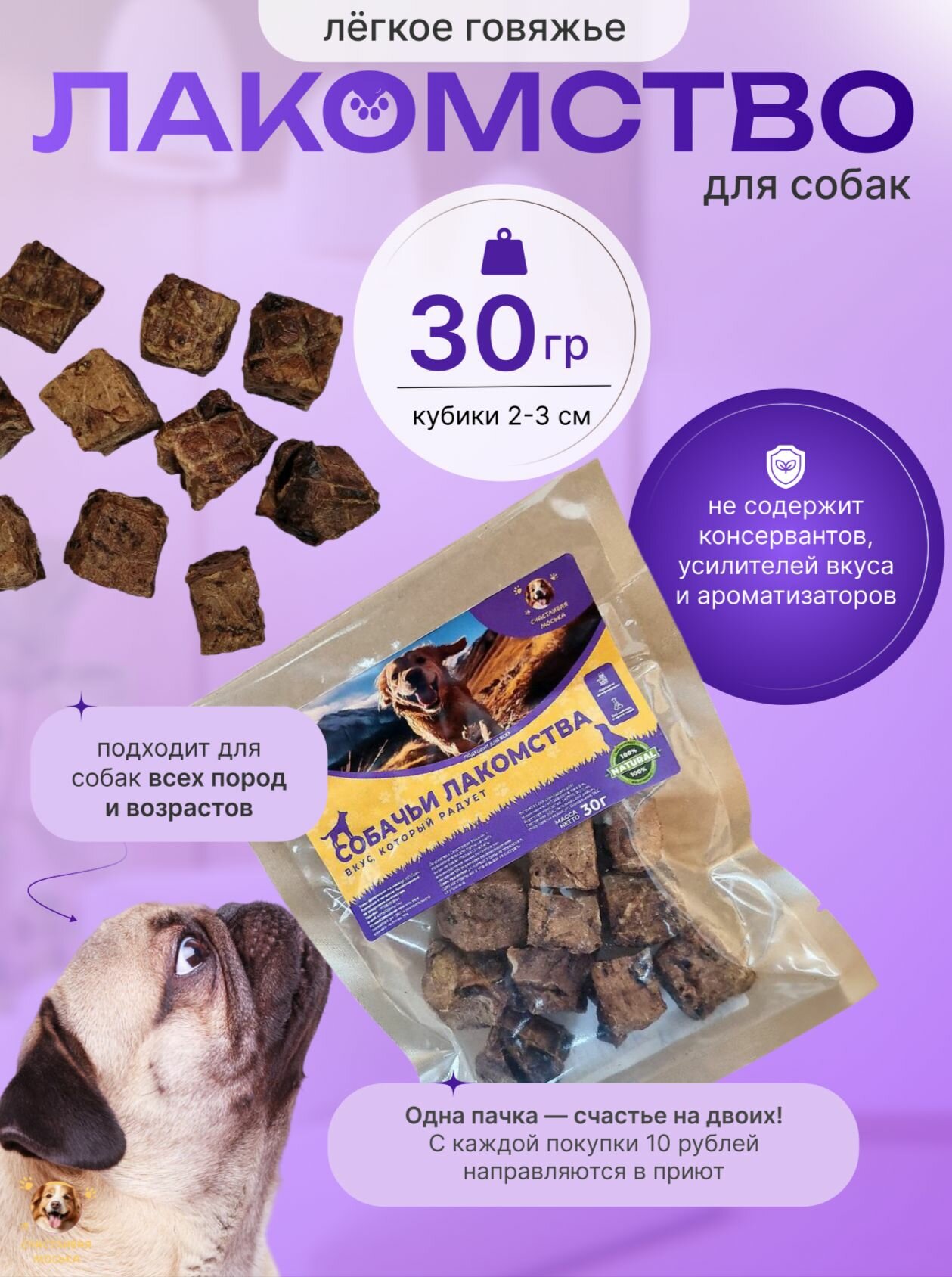 Легкое говяжье кусочками для собак 30 гр, лакомство для животных интересное: