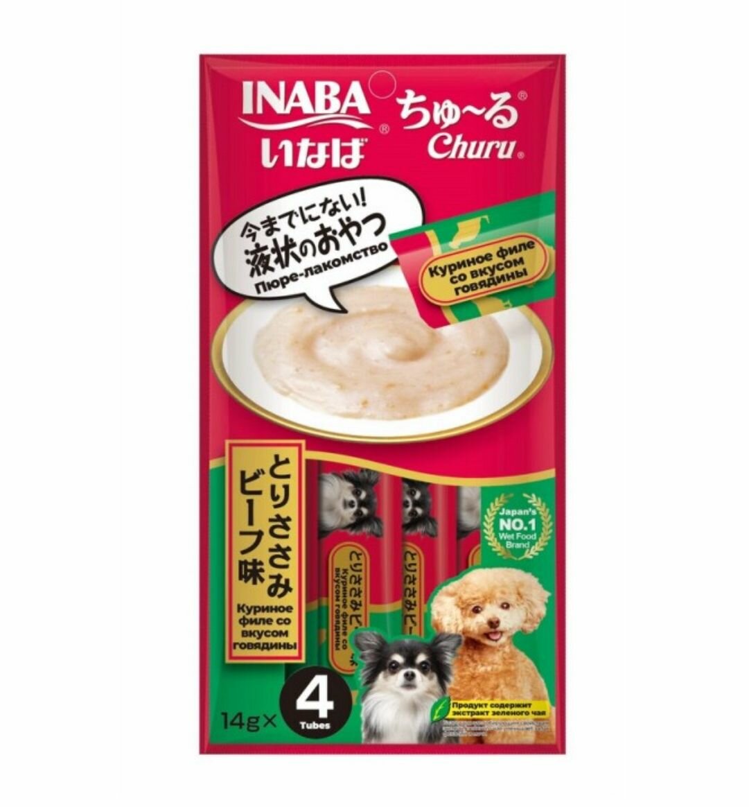 INABA / Инаба корм для собак мелких и средних пород влажный лакомство - пюре для собак Churu Куриное филе со вкусом говядины, 14 гр. Х 4 шт. интересное: