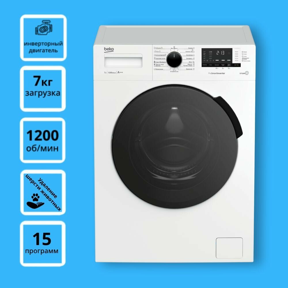 Стиральная машина Beko RSPE78612W класс: A+++ загр.фронтальная макс.:7кг белый