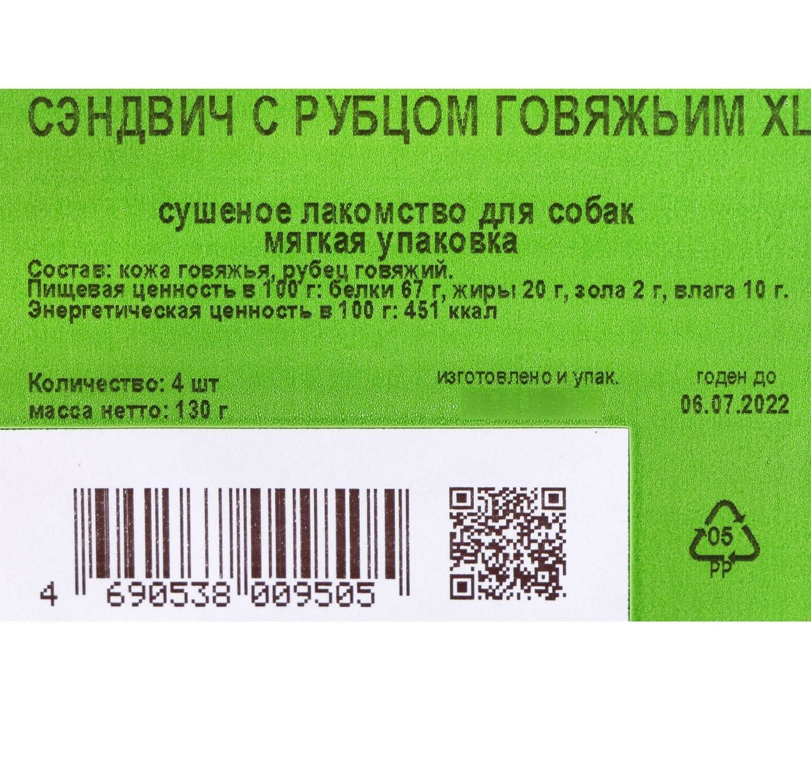 Купить Лакомство TiTBiT Сэндвич с говяжьим рубцом xl для собак (4 шт)