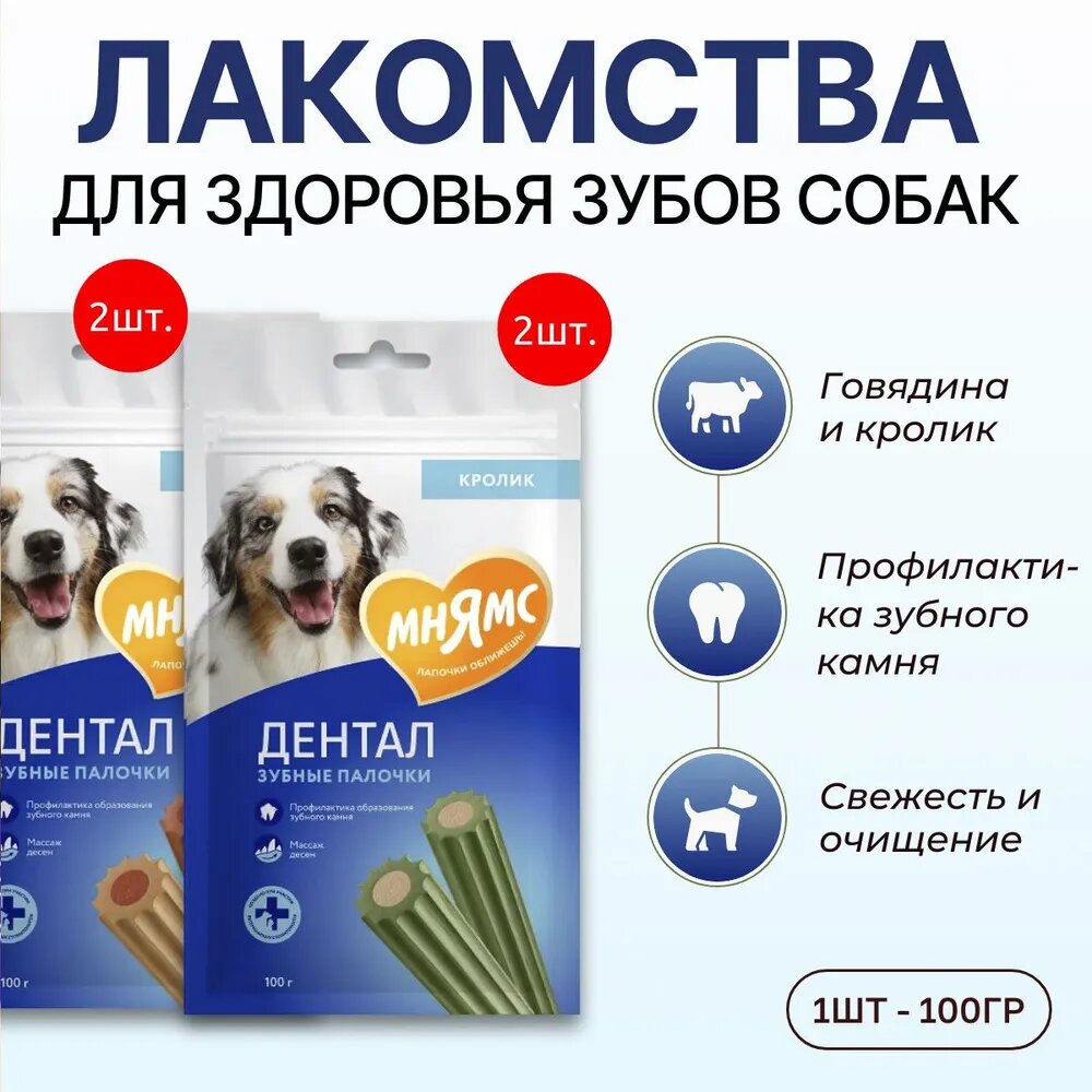 Набор лакомств №8 Мнямс ДЕНТАЛ для собак Зубные палочки с говядиной и кроликом, 2 шт х 100 гр (2 вида по 1 шт)