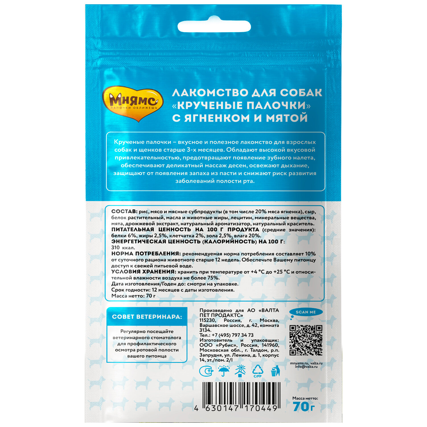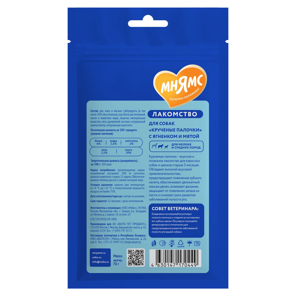 Купить Мнямс Dental лакомство для собак "Крученые палочки" с ягненком и мятой - 70 г