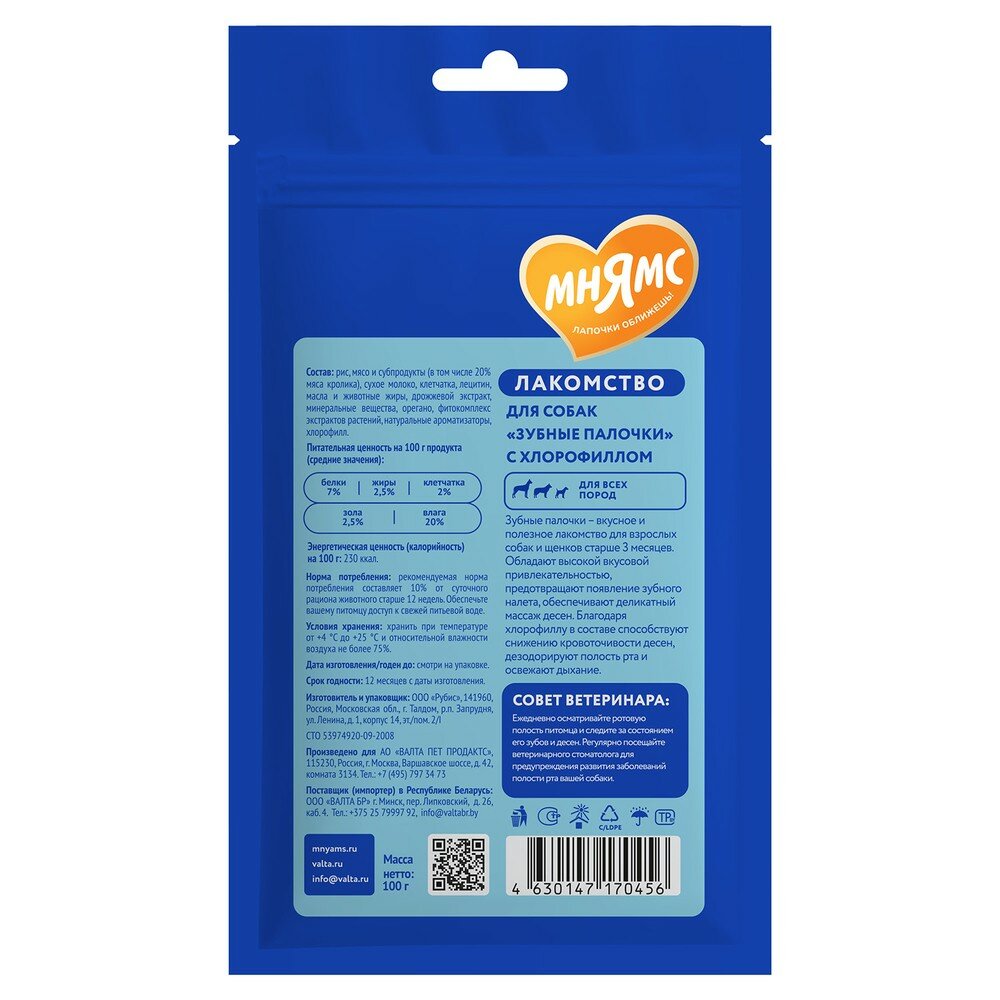 Купить Лакомство для собак Мнямс Зубные палочки с хлорофиллом 100г (32042)