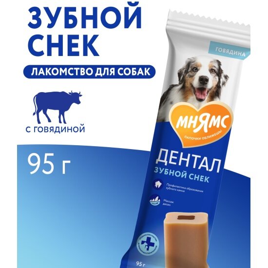 Купить Лакомство Мнямс дентал для собак "Зубной снек" с говядиной 95г
