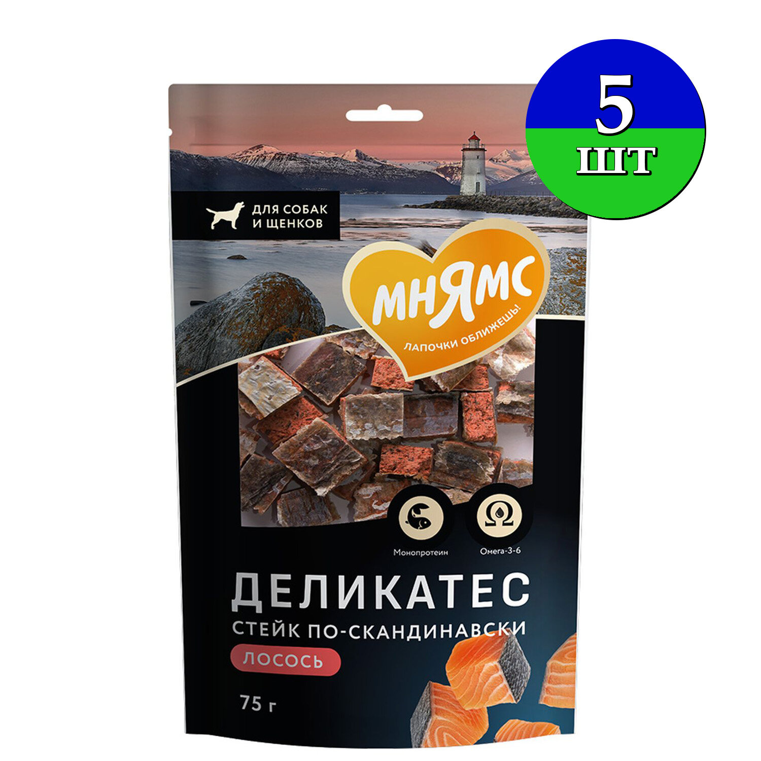 Купить Лакомство для собак Мнямс Delicatesse стейк по-скандинавски, 75 г х 5 шт