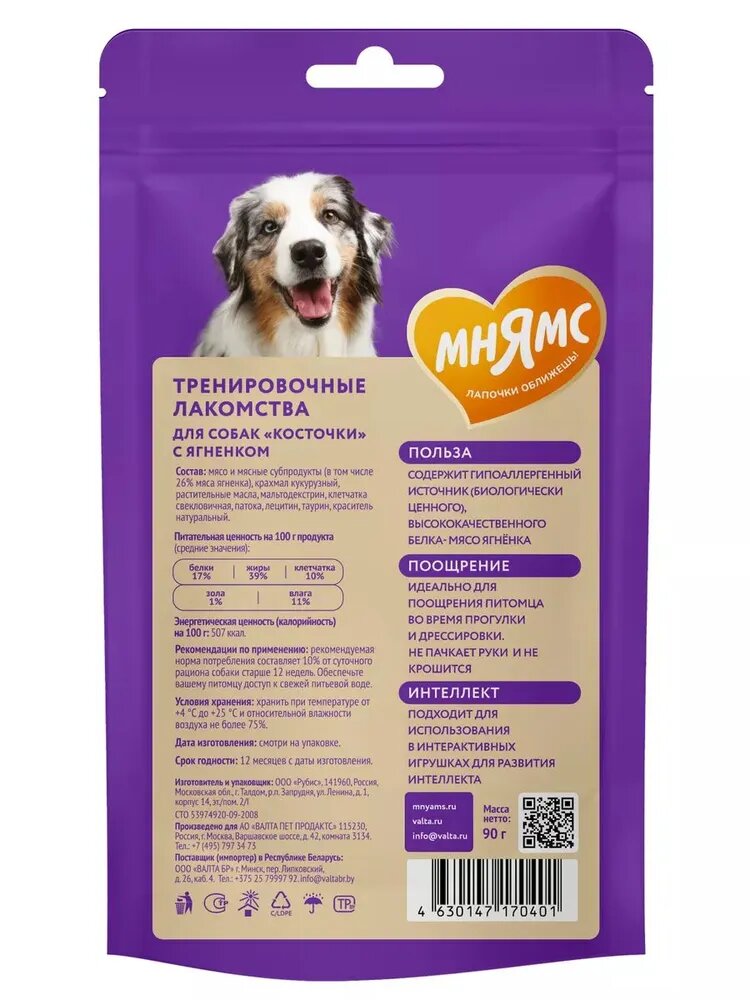 Лакомства тренировочные Мнямс для собак "Косточки" с ягненком 90г