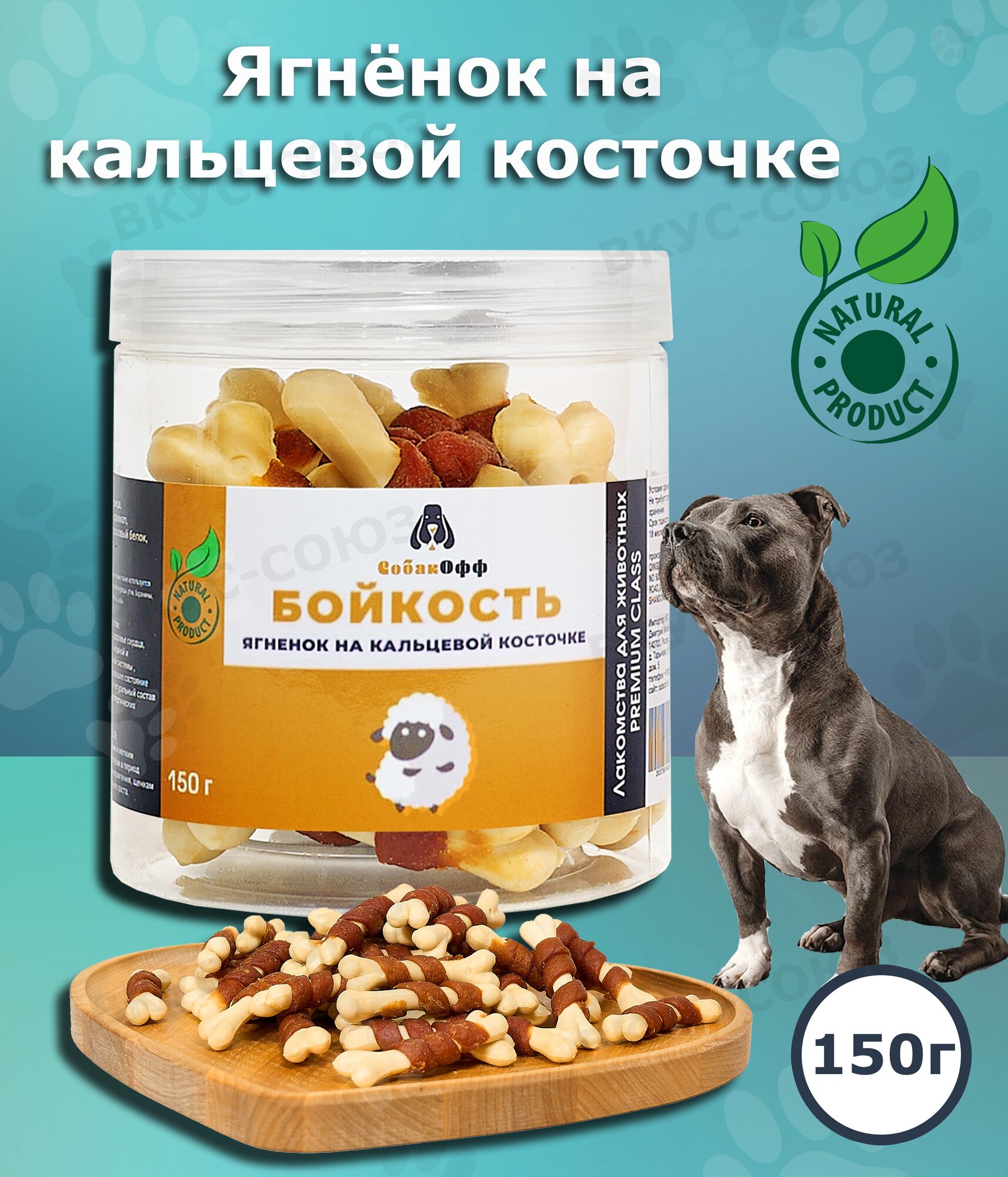Лакомства для собак Бойкость ягнёнок на кальциевой косточке 150г для всех пород, натуральные Собакофф интересное:
